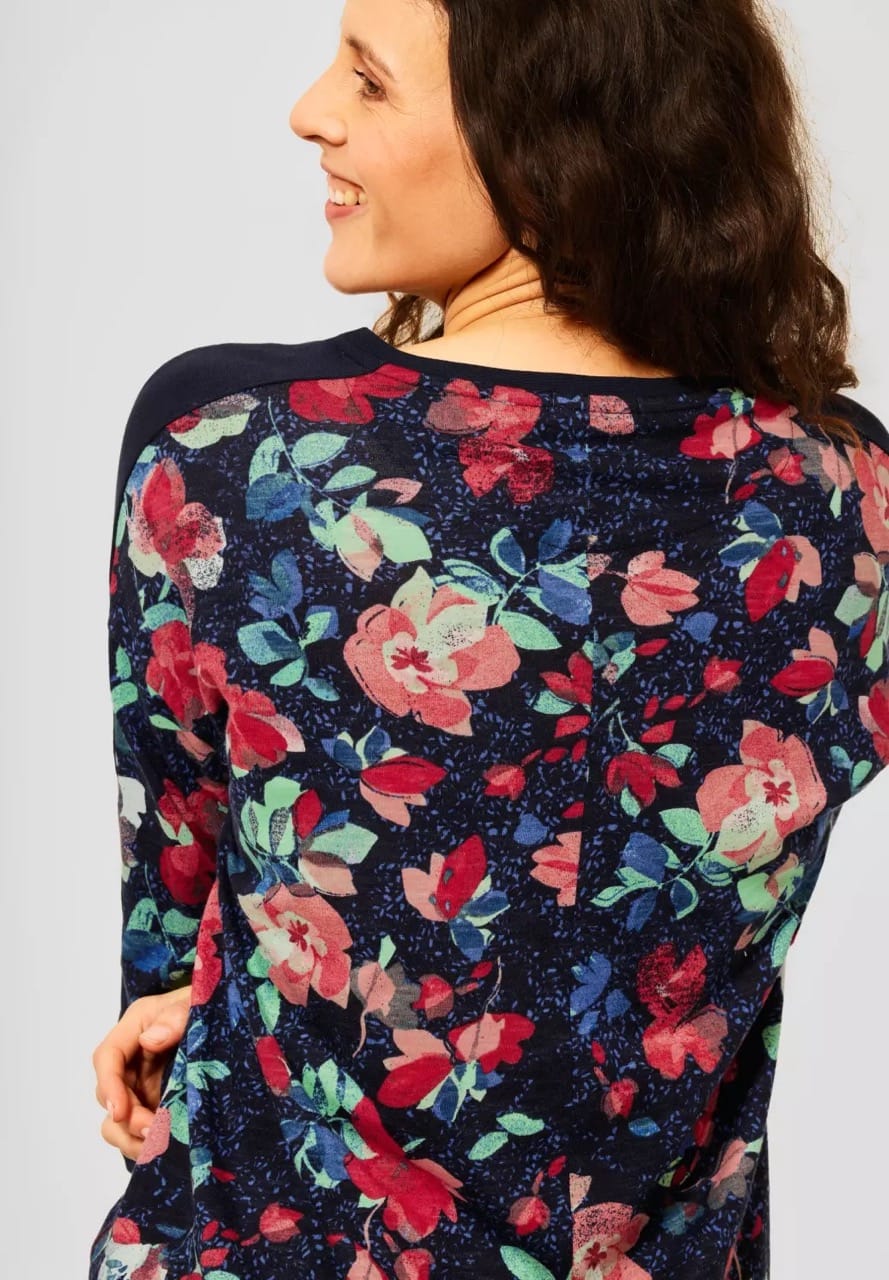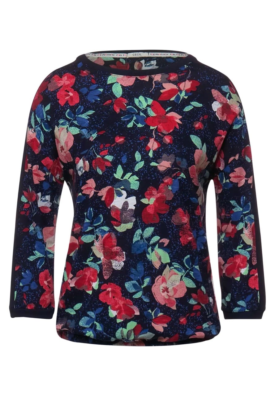 Cecil Tops en Shirts B317386 30128 4063041242590 Shirt van Cecil in een bloemen dessin met driekwart mouwen, trekkoord in de zoom en een boothals. Materiaal: Katoen 50%| modal 50% |