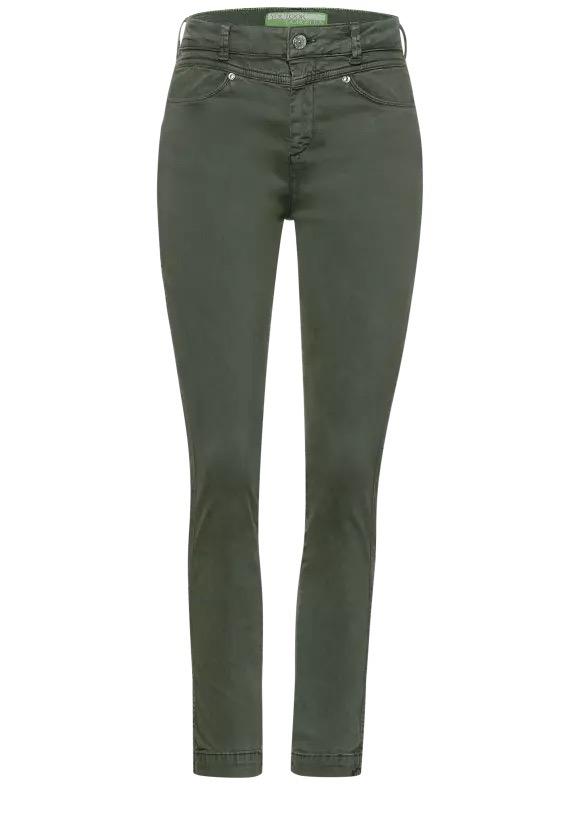 Street One Broeken A374833 4063052790844 4-pocket broek van Street One met een hoge taille, slanke pijpen en een ritssluiting en knoop. Materiaal: Lyocell 57%| katoen 40%| elastan 3% |