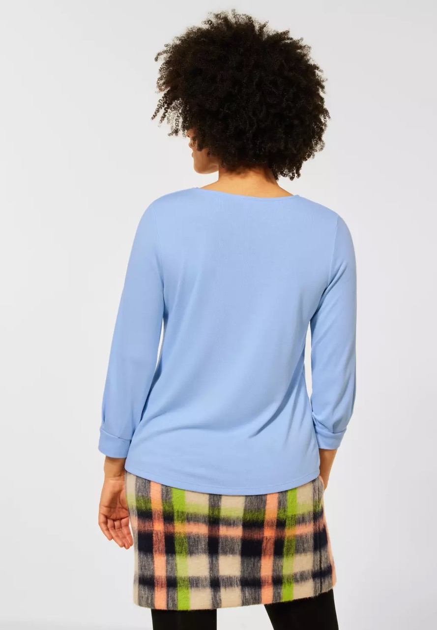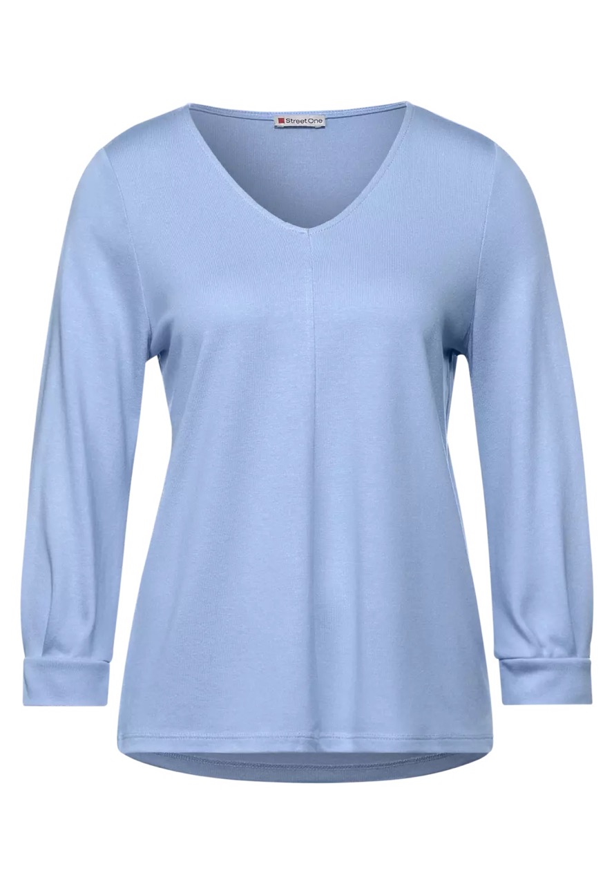 Street One Tops en Shirts A317446 4063052835231 Shirt van Street One met driekwart mouwen, V-hals en een opschrift aan de zoom. Materiaal: Viscose 83%| polyester 17% |