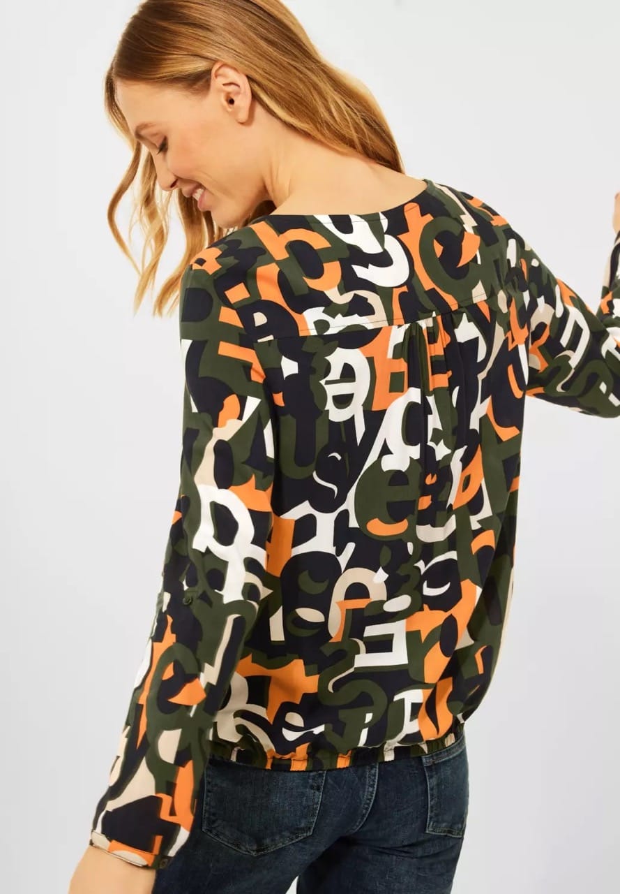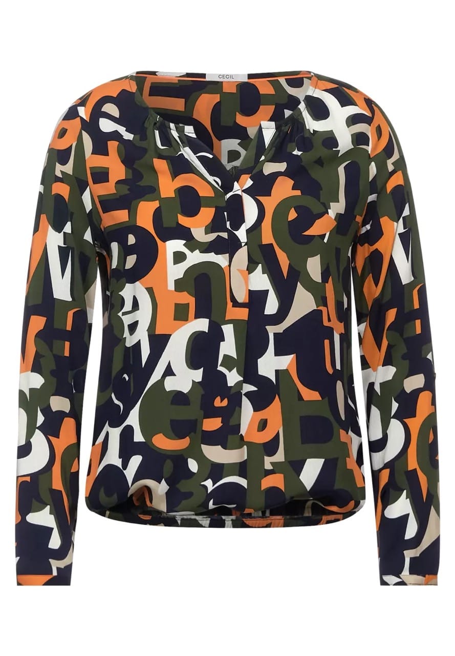 Cecil Blouses B343064 4063041303109 Blouse van Cecil in een all-over dessin met lange hold-up mouwen, elastische zoom en een ronde hals met split. Materiaal: Viscose 100% |