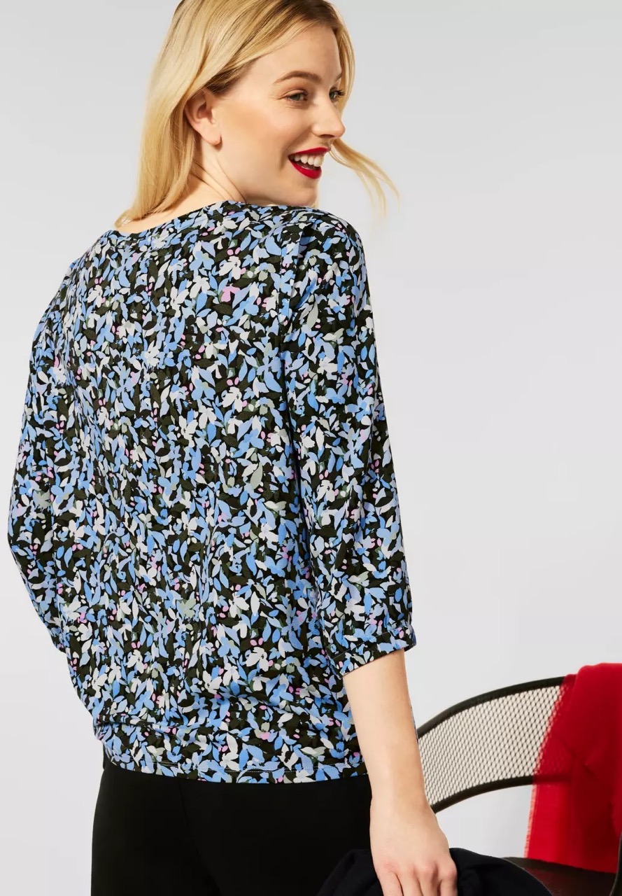 Street One Blouses A317498 4063052795672 Shirt van Street One in een bloemen dessin met driekwart mouwen, ronde hals met split aan de voorzijde en elastische manchetten. Materiaal: Viscose 95%| elastan 5%. Achterkant: Viscose 100% |