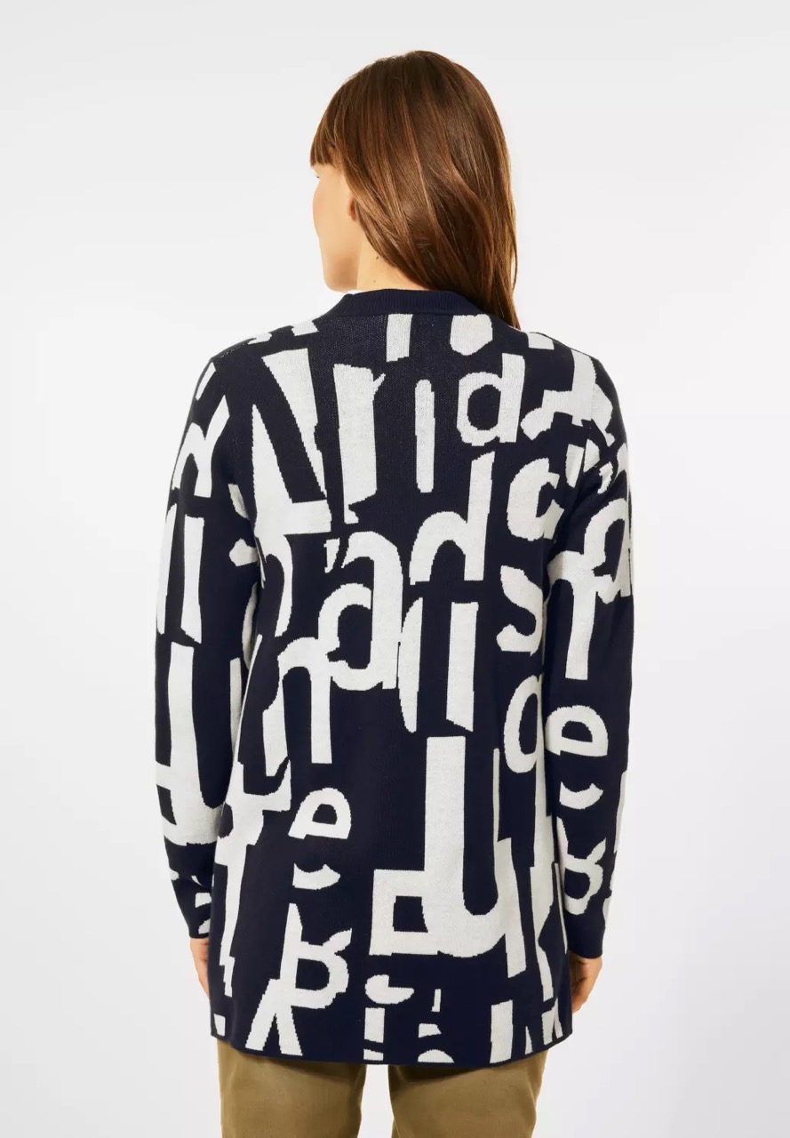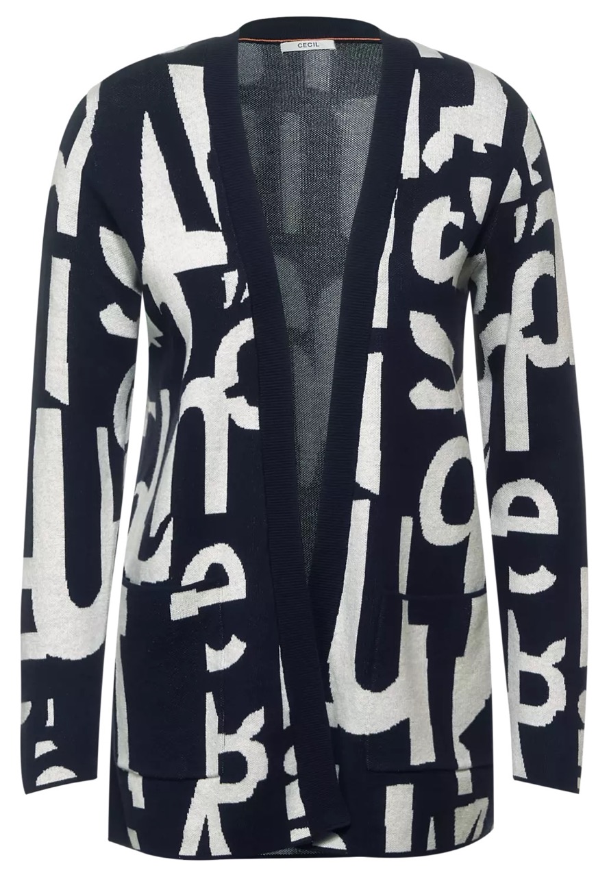 Cecil Truien en Vesten B253371 4063041301136 Openvallend dubbelgebreid vest van Cecil met een letterprint, lange mouwen en twee opgestikte zakken. Materiaal: Katoen 100% |