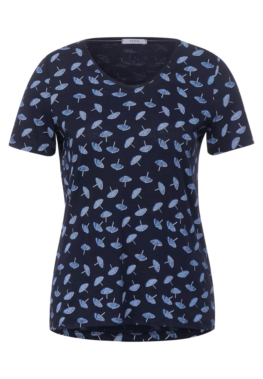 Cecil Tops en Shirts B317606 4063041367446 T-shirt van Cecil in een all=-over dessin met korte mouwen en een afgeronde V-hals. Materiaal: Katoen 50%| modal 50% |