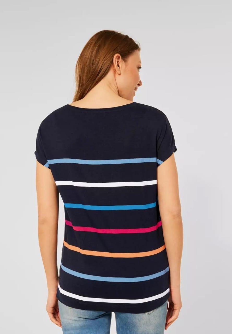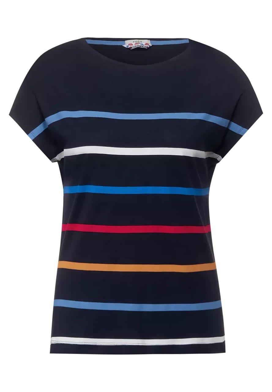 Cecil Tops en Shirts B317642 4063041382647 Gestreept shirt van Cecil met korte aangeknipte mouwen en een ronde hals. Materiaal: Katoen 50%| modal 50% |