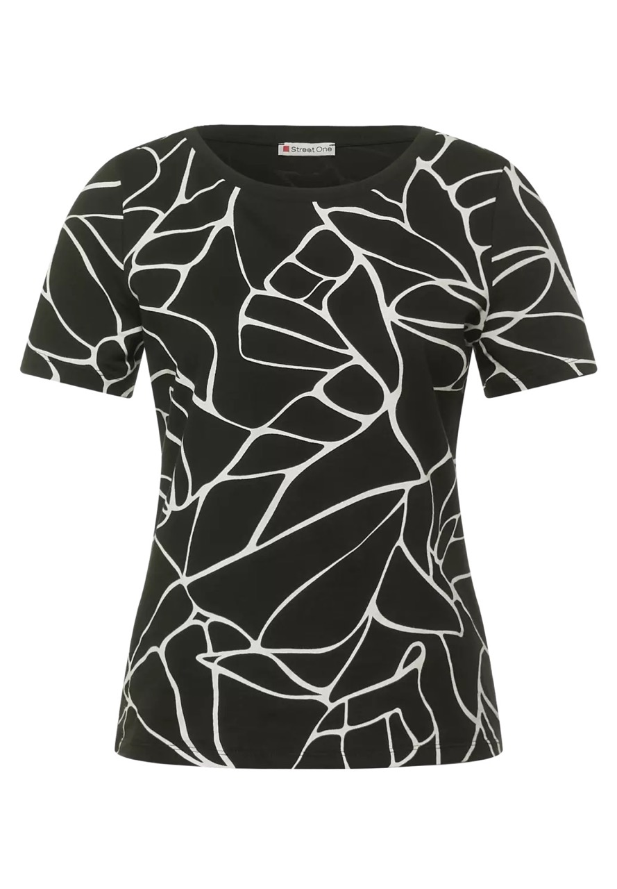 Street One Tops en Shirts A317638 4063052899974 T-shirt van Street One in een abstract dessin met korte mouwen en een ronde hals. Materiaal: Katoen 100% |