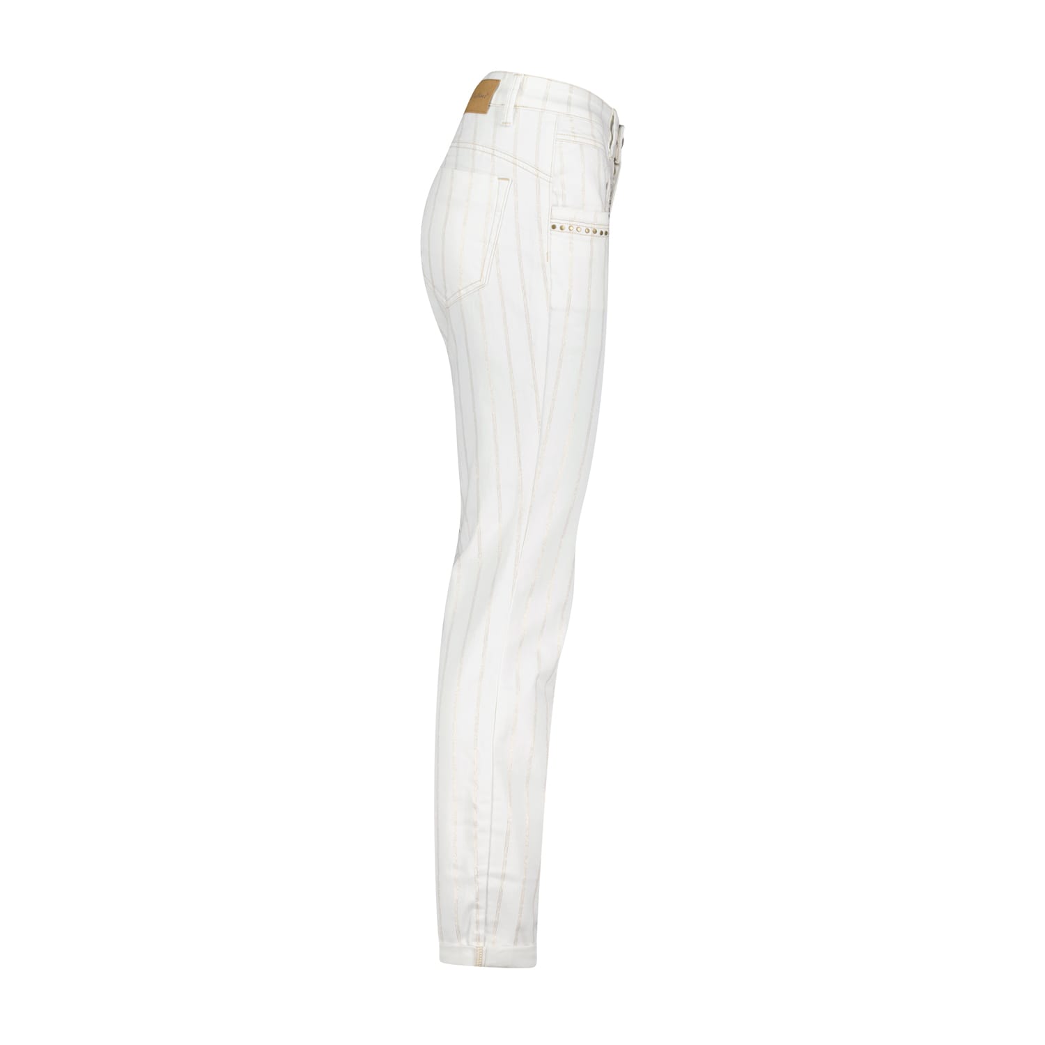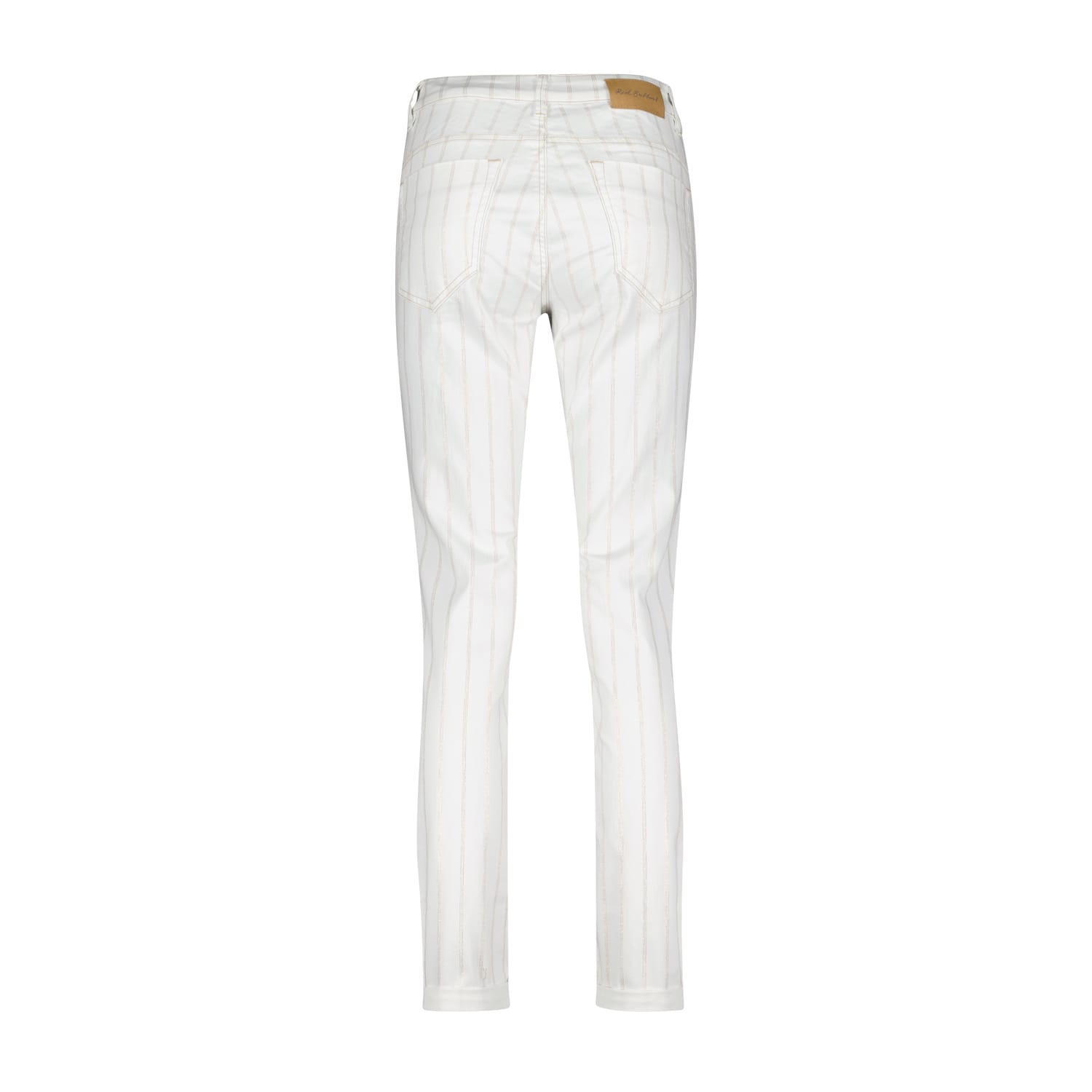 Red button Broeken SRB2978 SIENNA 8720171828396 Gestreepte 4-pocket broek van Red button met een knoop-en ritssluiting, omslag in de pijpen en studs detail langs de voorzakken. Materiaal: Katoen 66%\ gerecycled polyester 32%| elastan 2% |