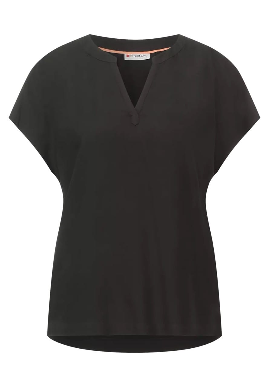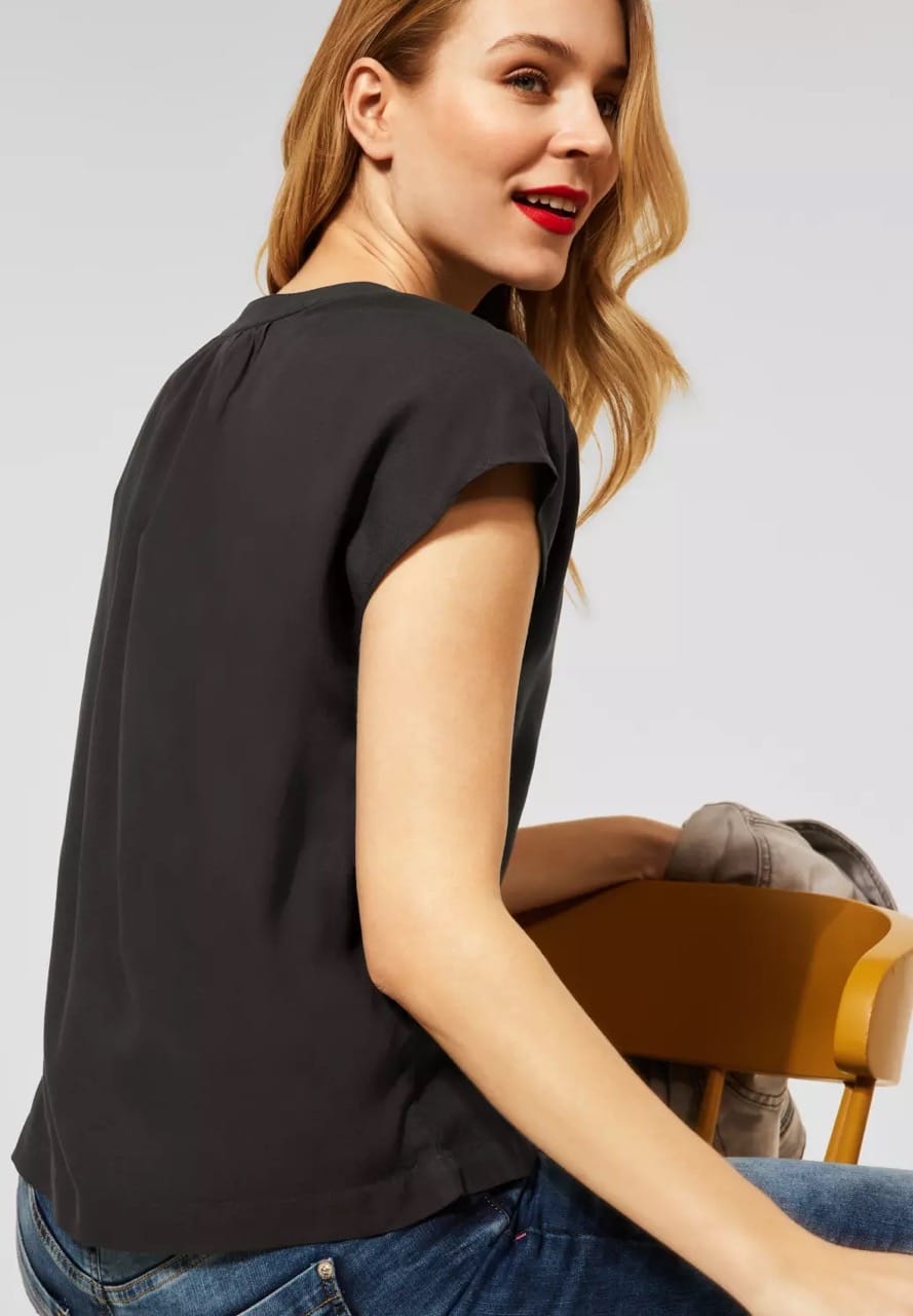 Street One Tops en Shirts A343122 13610 4063052886646 Shirt blouse van Street One met korte aangeknipte mouwen en een ronde hals met een split. Materiaal: Viscose 100% |