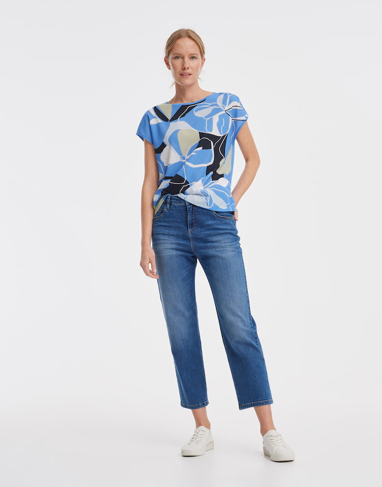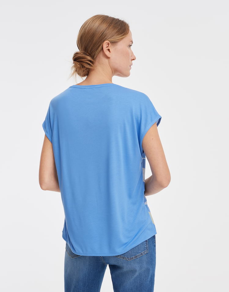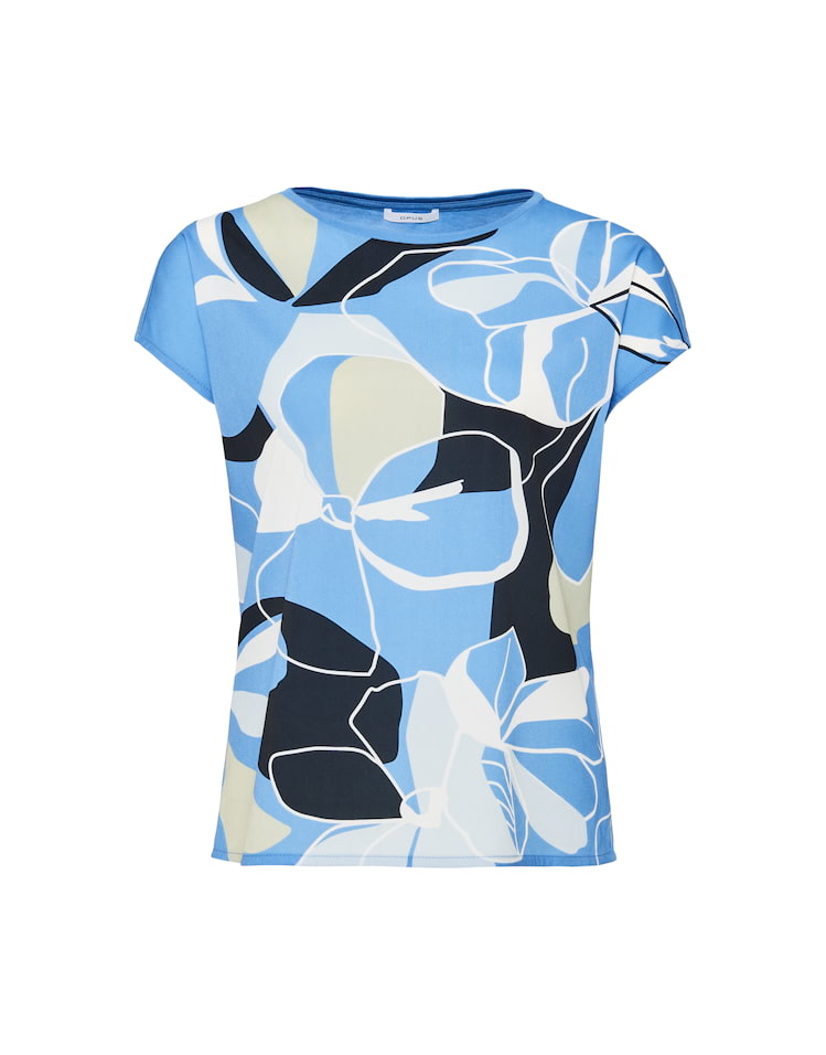 Opus Tops en Shirts 10027510308120 4251892229789 Shirt van Opus in een all-over dessin aan de voorzijde, effen achterzijde met korte aangeknipte mouwen en een ronde hals. Materiaal: Viscose 100% |