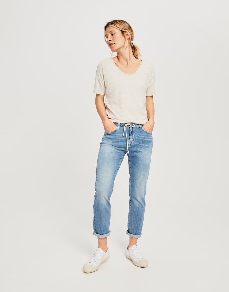 Opus Jeans 1002965700100 4251892225477 5-pocket jeans van Opus met een knoop- en ritssluiting en een strikceintuur. Materiaal: Katoen 93%| polyester 5%| elastan 2% |