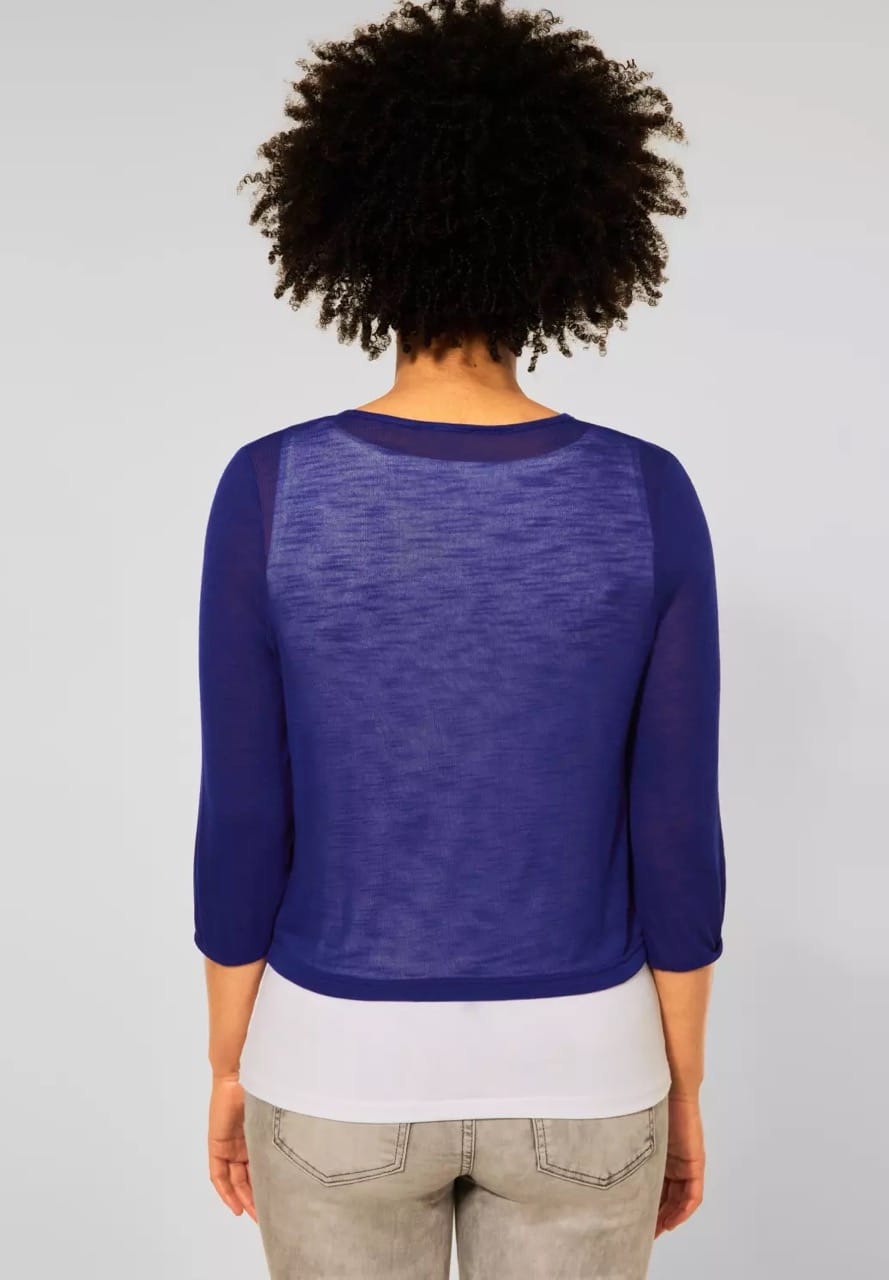 Street One Truien en Vesten A317788 4063052982201 Openvallend vest van Street One in een gemĂȘleerd dessin met driekwart mouwen. Materiaal: Viscose 91%| elastan 9% |