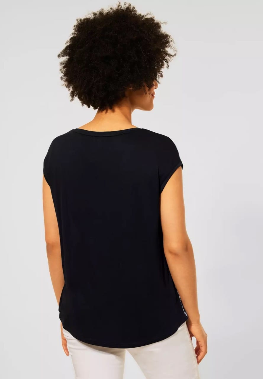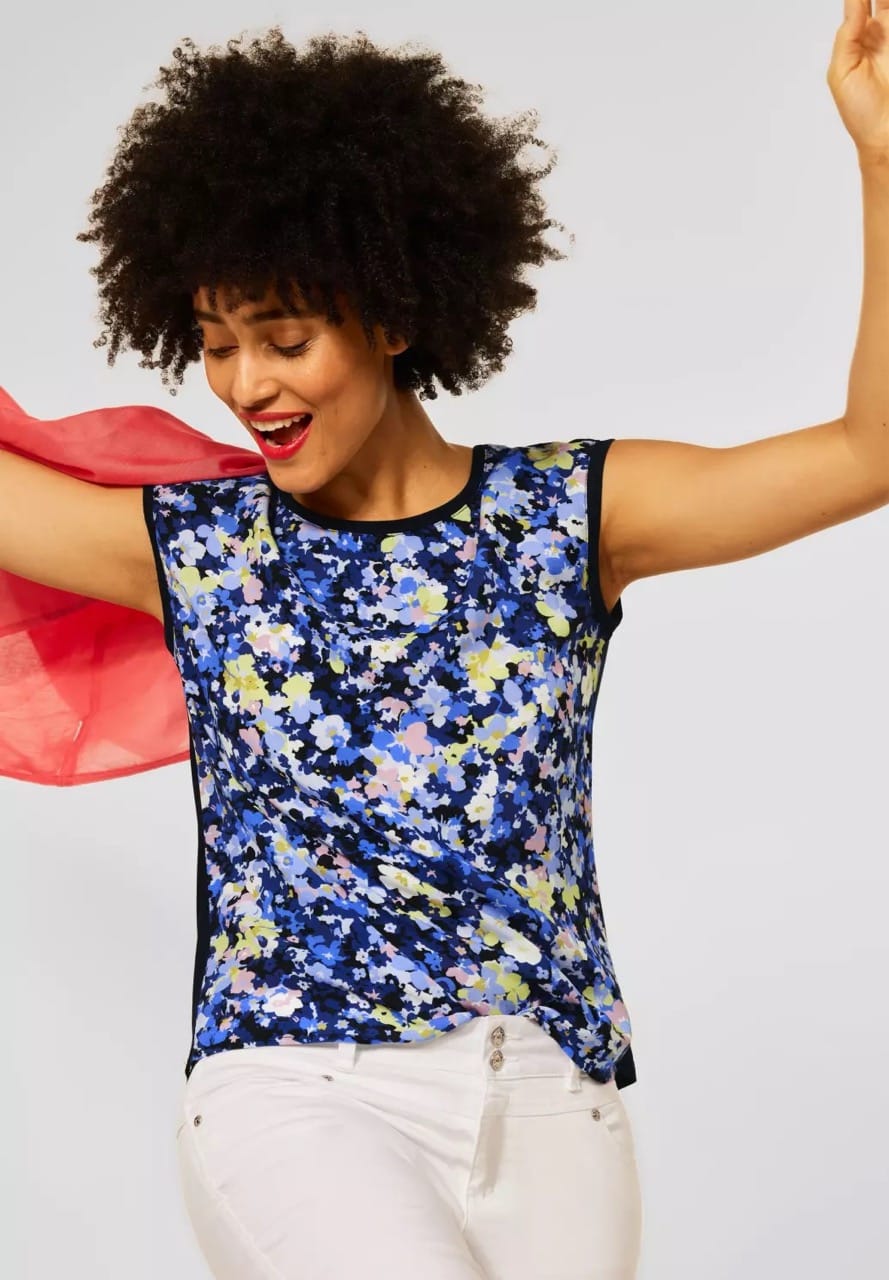 Street One Tops en Shirts A317851 33765 4063053018138 Mouwloos shirt van Street One in een bloemendessin aan de voorzijde, effen achterzijde en een ronde hals. Materiaal: EcoVero Viscose 100% |