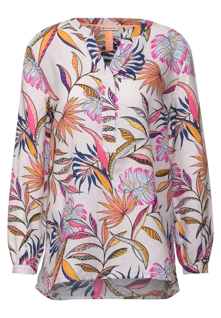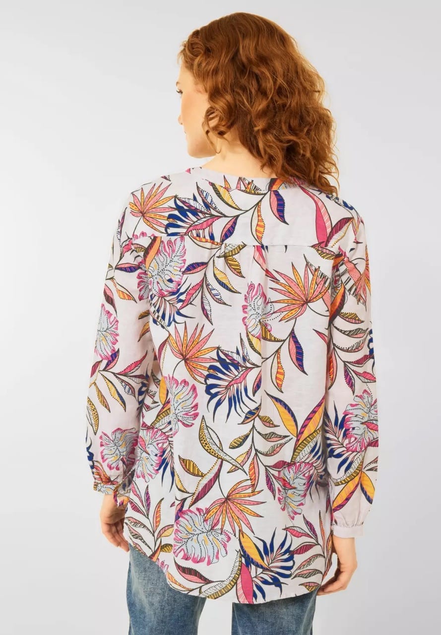 Street One Blouses A343101 4063052819781 Linnen blouse van Street One in een bloemen dessin met lange mouwen en een ronde hals met split. Materiaal: Linnen 60%| katoen 40% |