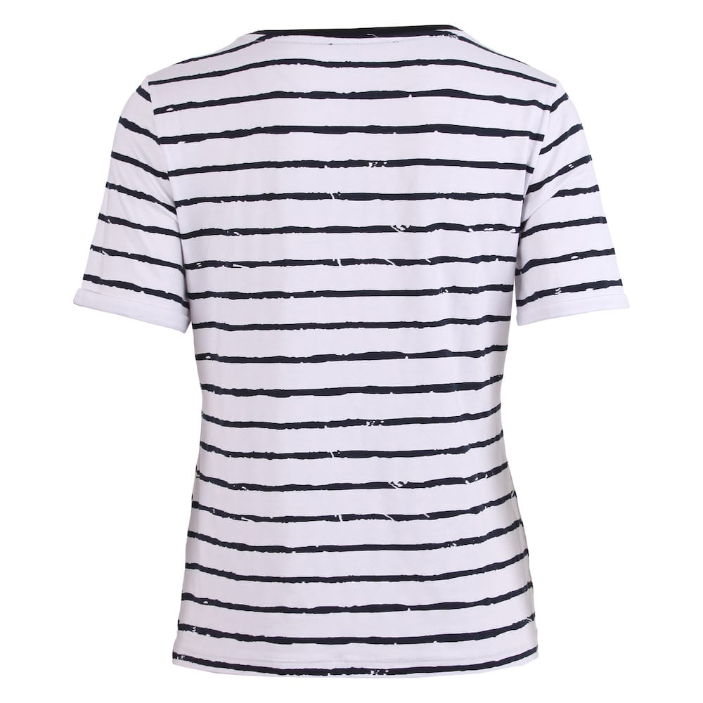 Enjoy Tops en Shirts 183684 2900000401921 Gestreept T-shirt van Enjoy met een tekstprint aan de voorzijde, korte mouwen en een ronde hals. Materiaal: Viscose 92%| elastan 8% |