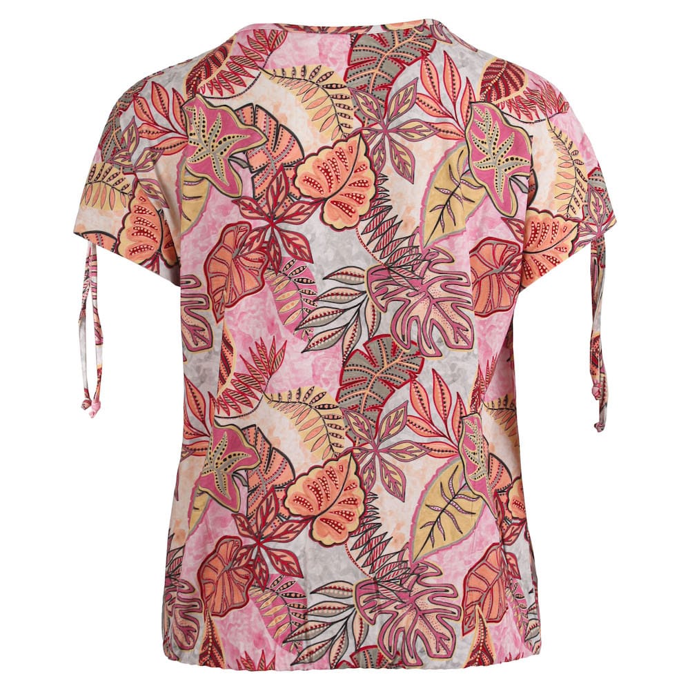 Enjoy Tops en Shirts 186005 2000000520032 Blouson van Enjoy in een all-over dessin met korte aangeknipte mouwen voorzien van strikdetails, ronde hals en een elastische zoom. Materiaal: Viscose 95%| elastan 5% |