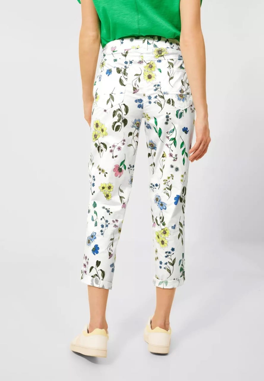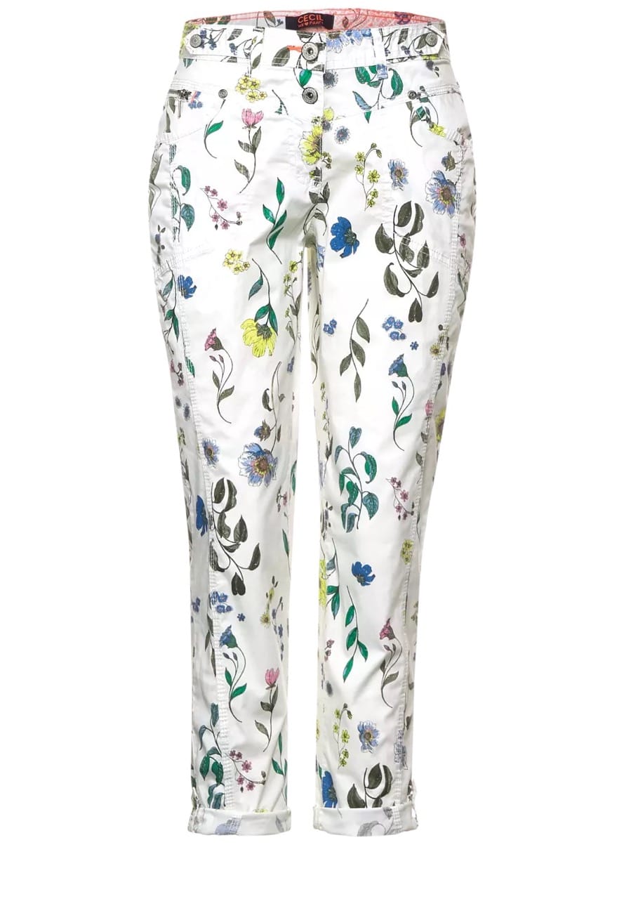 Cecil Broeken B375100 4063041510217 Casual-fit 5-pocket broek van Cecil in een bloemen dessin met turn-up aan de zoom en een dubbele knoop- en ritssluiting. Materiaal: Katoen 98%| elastan 2% |
