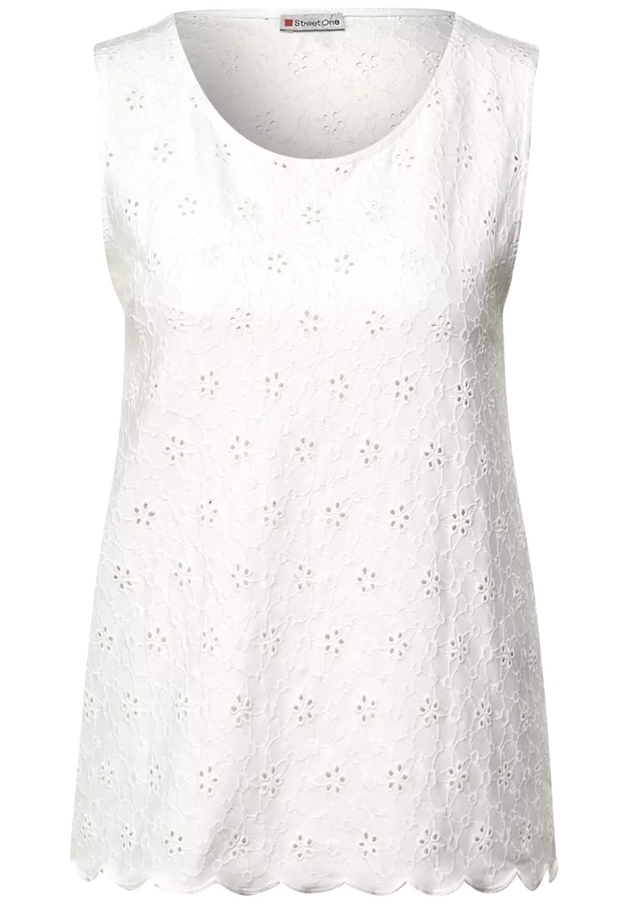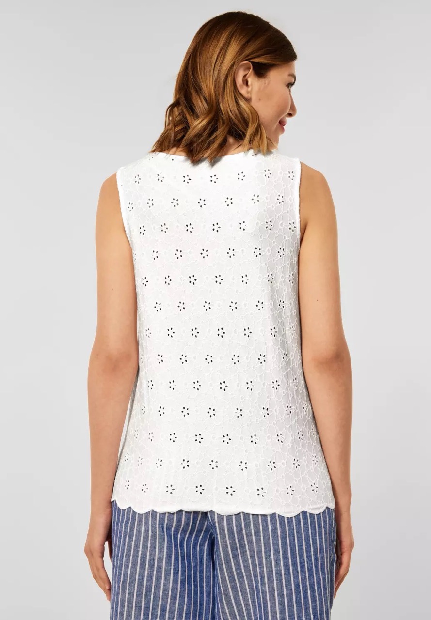 Street One Tops en Shirts A317794 4063052987053 Mouwloze top van Street One in een all-over geborduurd dessin met een ronde hals. Materiaal: Katoen 96%| elastan 4% |