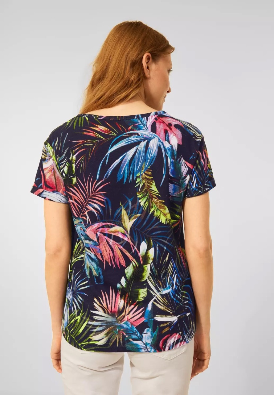 Cecil Tops en Shirts B317421 4063041278063 Linnen shirt van Cecil in een bladeren dessin met korte mouwen, verlaagde schoudernaden en een U-boothals. Materiaal: Linnen 50%| katoen 50% |