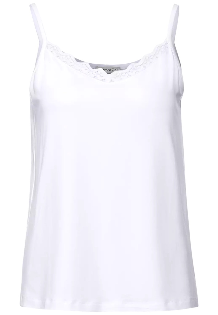 Street One Tops en Shirts A317995 4063055010406 Mouwloze top van Street One met spaghettibandjes en een kanten inzetstuk aan de V-hals. Materiaal: Eco viscose 95%| elastan 5% |