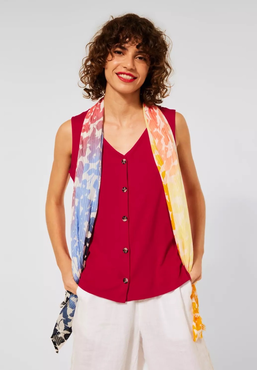 Street One Tops en Shirts A317996 4063053078132 Mouwloze top van Street One met een V-hals en een knoopsluiting. Materiaal: Eco viscose 95%| elastan 5% |