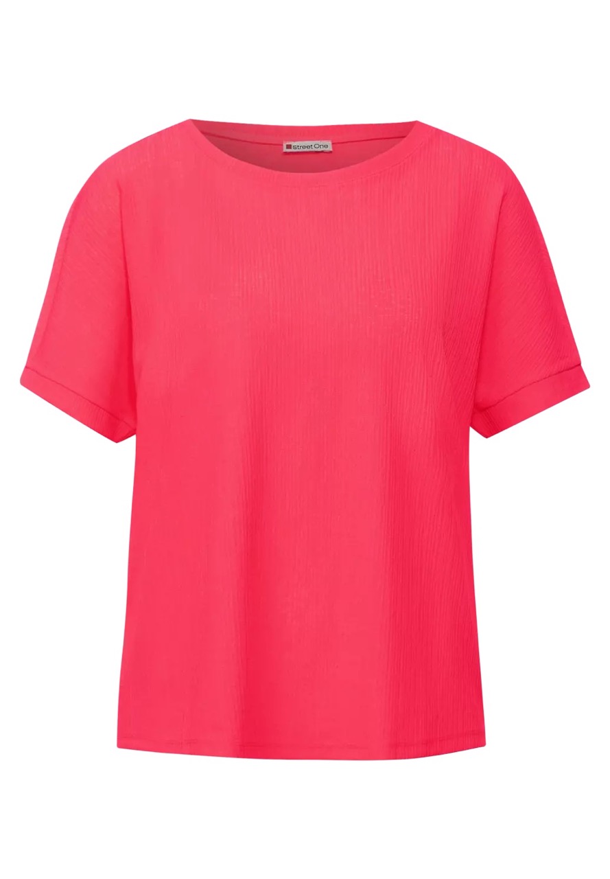 Street One Tops en Shirts A318022 4063053086311 T-shirt van Street One in een structuur dessin met korte mouwen en een ronde hals. Materiaal: Polyester 92%| elastan 8% |