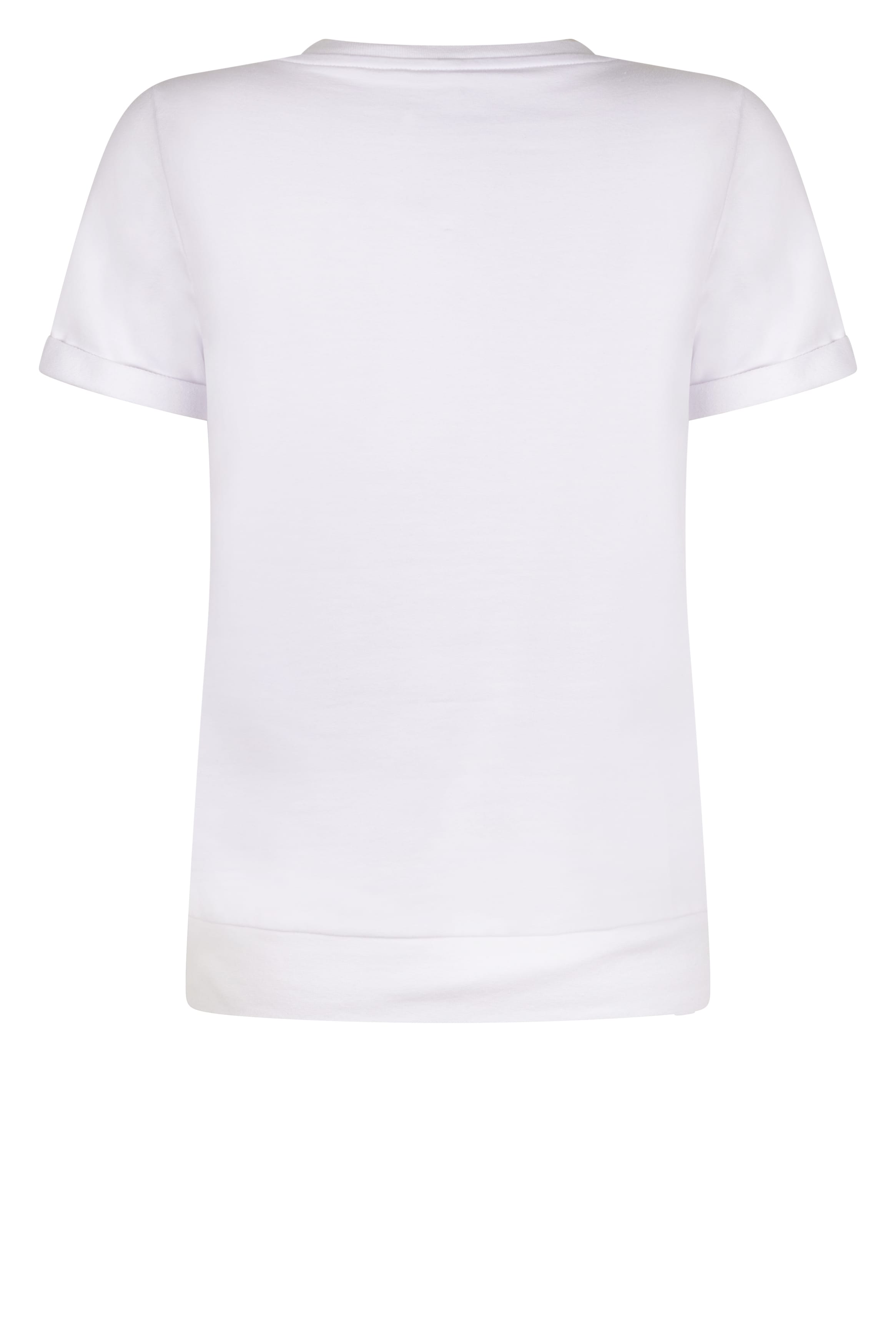 Zoso Tops en Shirts 222 JOY 8720036421427 Shirt van Zoso met korte mouwen, V-hals en tekstprint in pailletten op de voorzijde. Materiaal: Katoen 95%| elastan 5% |
