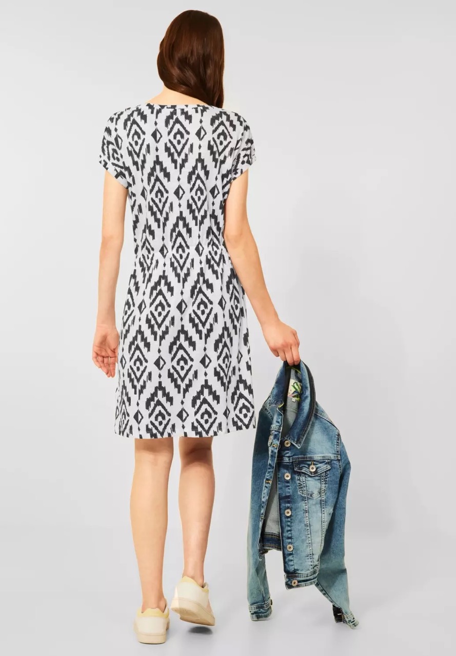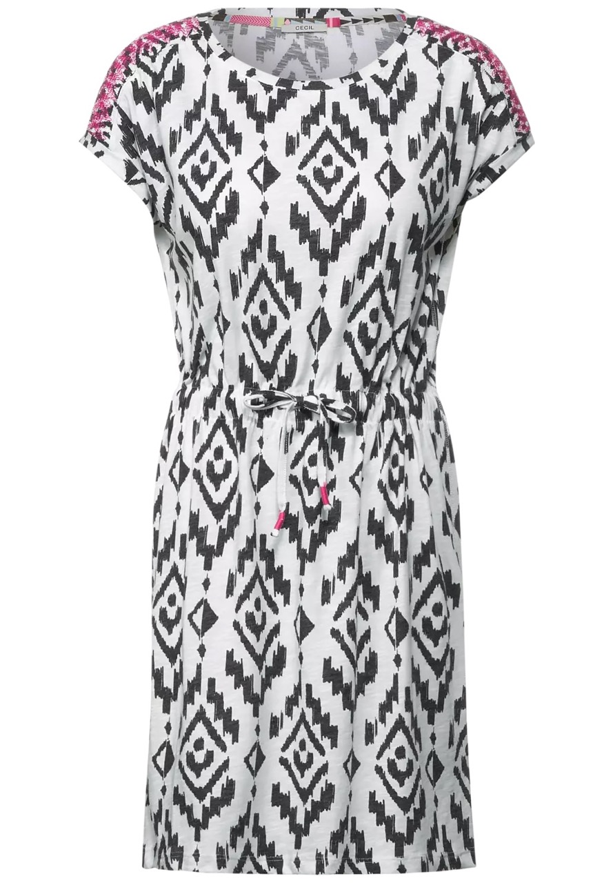 Cecil Jurken en Rokken B143256 4063041576213 Jersey jurk van Cecil in een etnisch dessin met korte aangeknipte mouwen, ronde hals, gesmokte details op de schouders en een elastische trekkoord in de taille. Materiaal: Polyester 50%| katoen 50% |