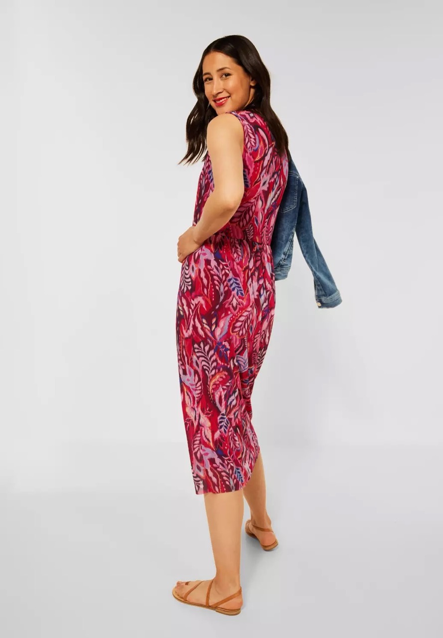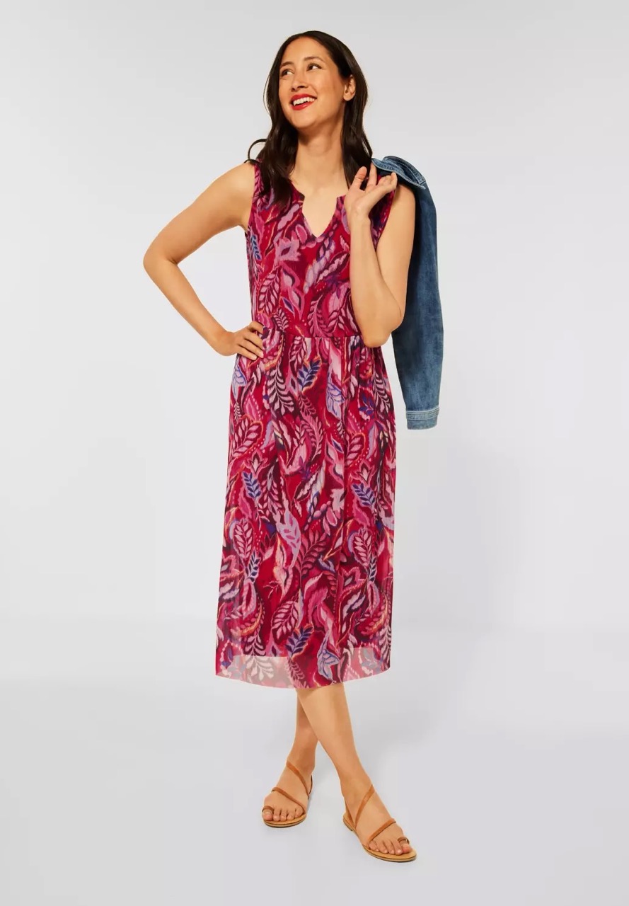 Street One Jurken en Rokken A143264 4063055000186 Mouwloze midi-jurk van Street One in een mesh-look met bladeren print en een ronde hals voorzien van split. Materiaal: Viscose 100% Mesh: Polyester 95%| elastan 5% |