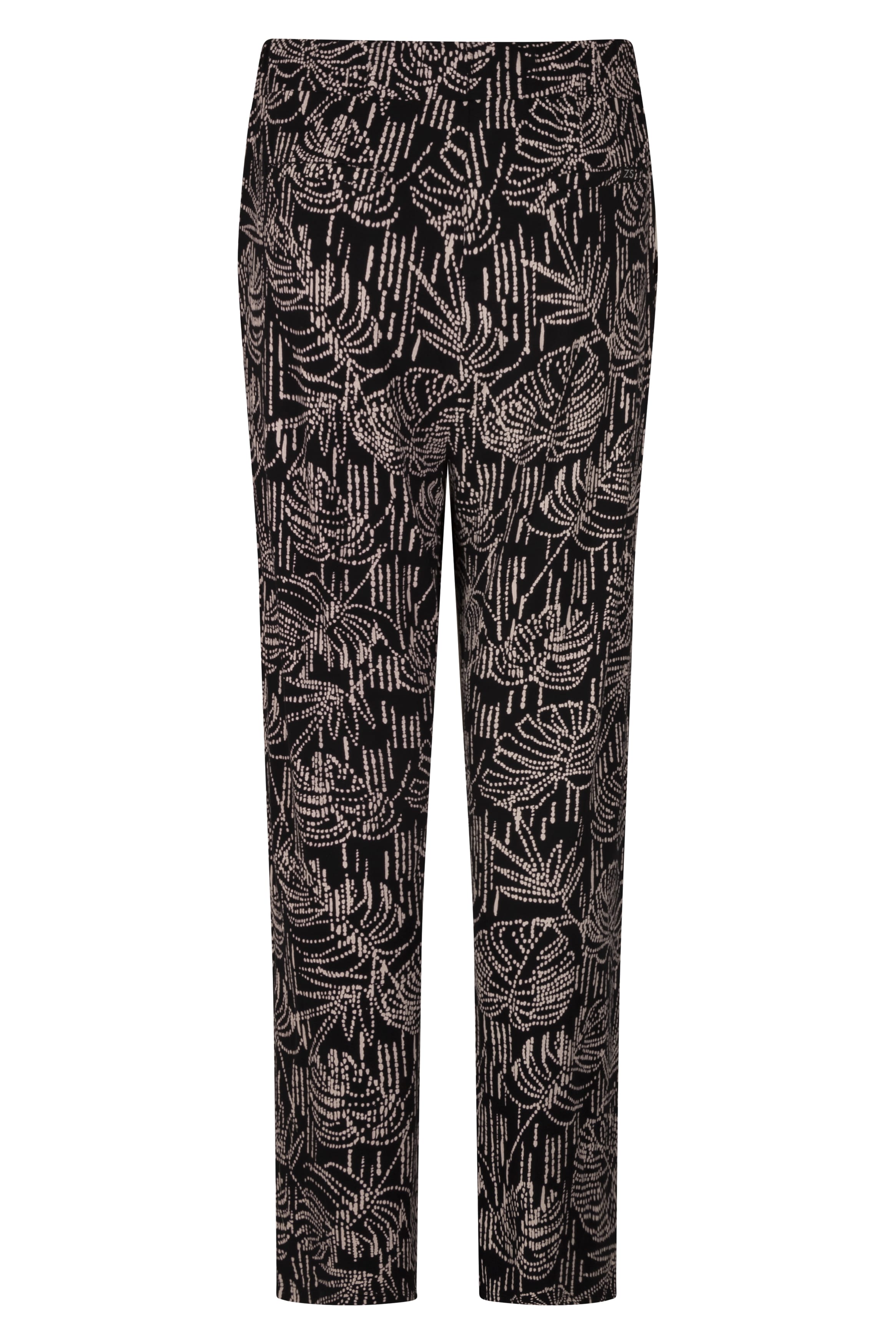 Zoso Broeken 222 LIZZY 8720036397784 Losvallende broek van Zoso in een all-over dessin met steekzakken, klepzakken aan de achterzijde en een elastische tailleband voorzien van trekkoord. Materiaal: Viscose 95%| elastan 5% |