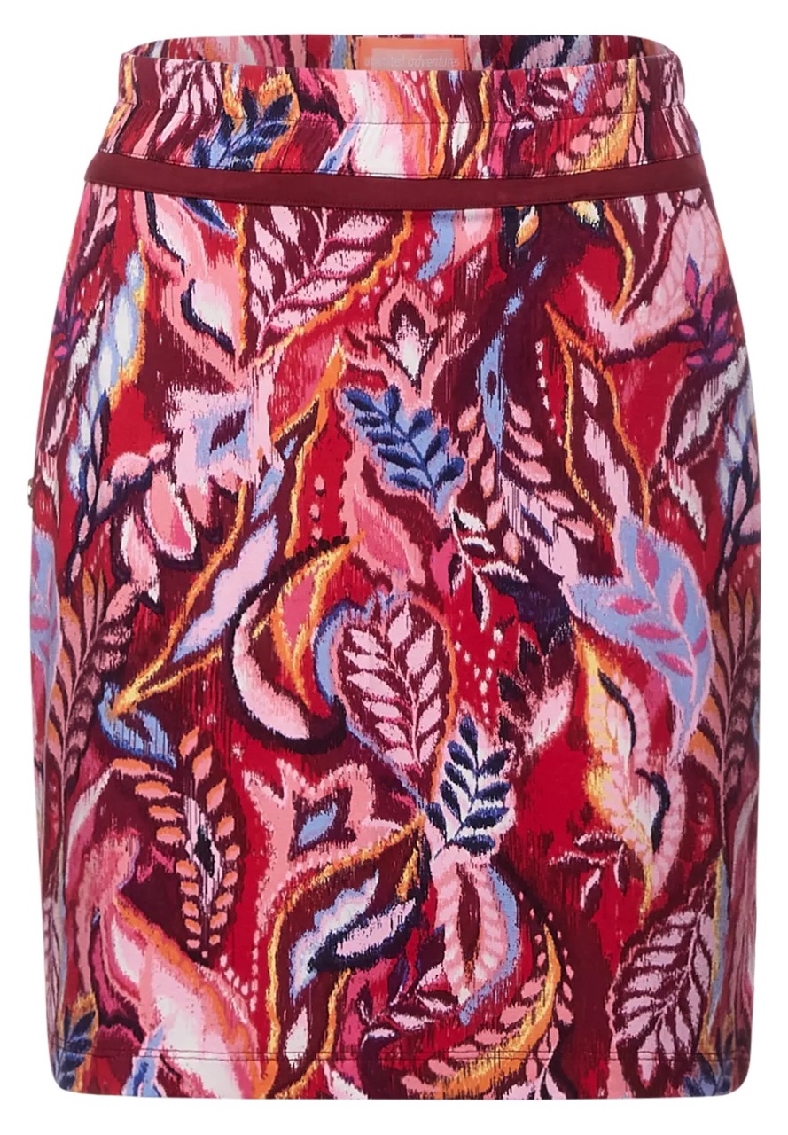 Street One Jurken en Rokken A361090 4063053101526 Korte rok van Street One in een all-over dessin met steekzakken en een elastische tailleband. Materiaal: Viscose 95%| elastan 5% |
