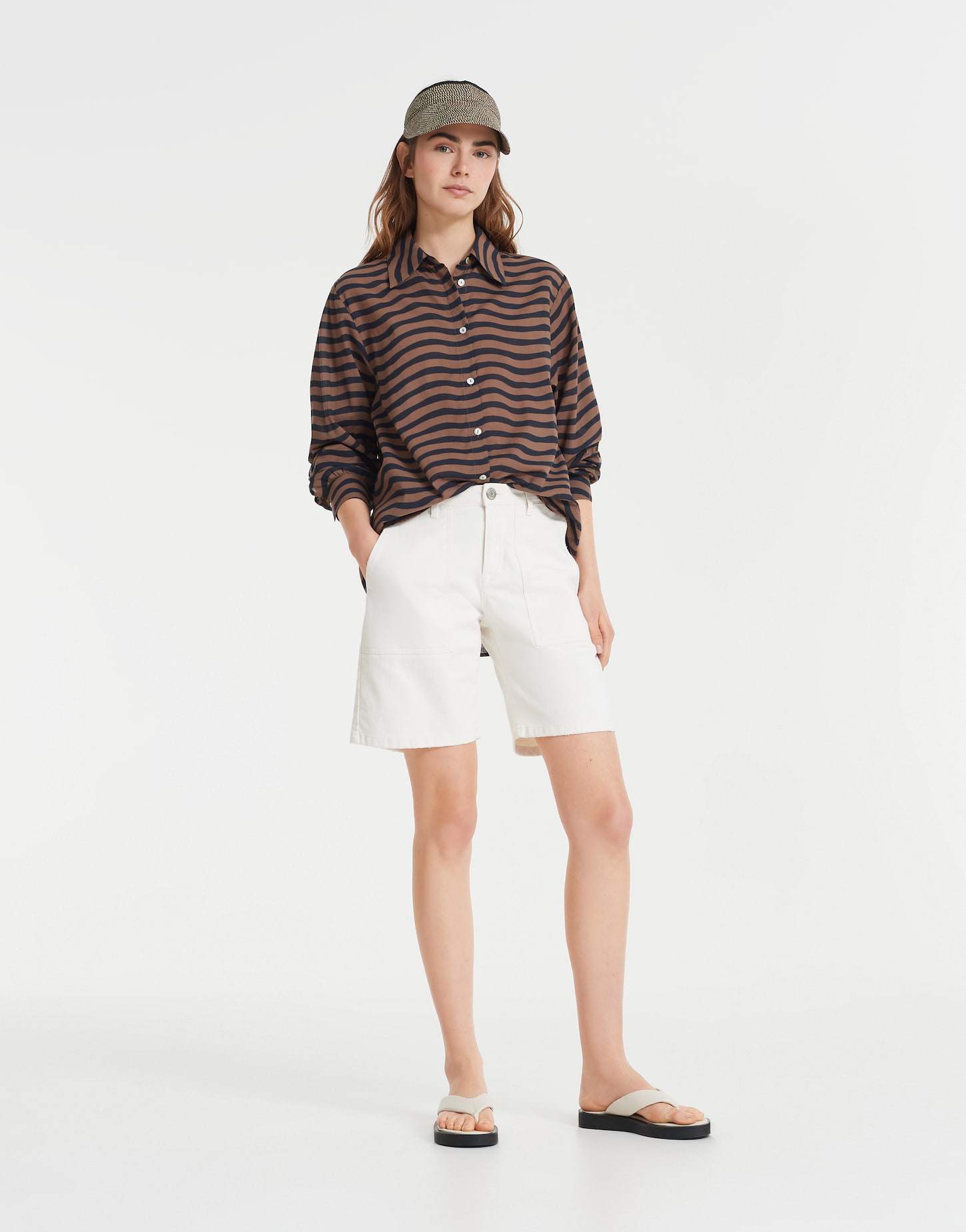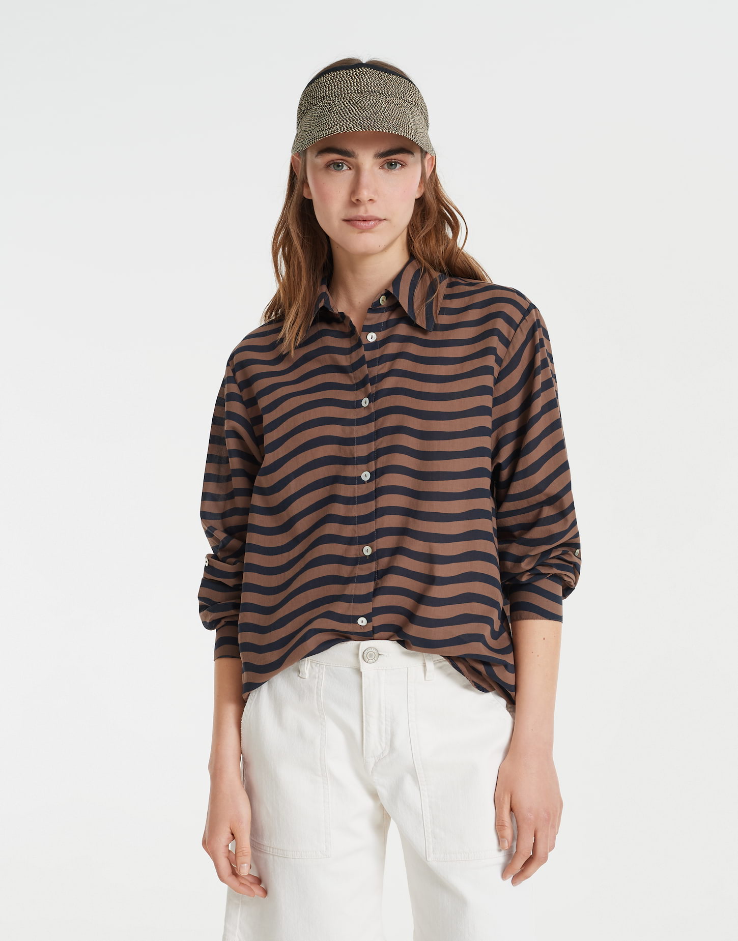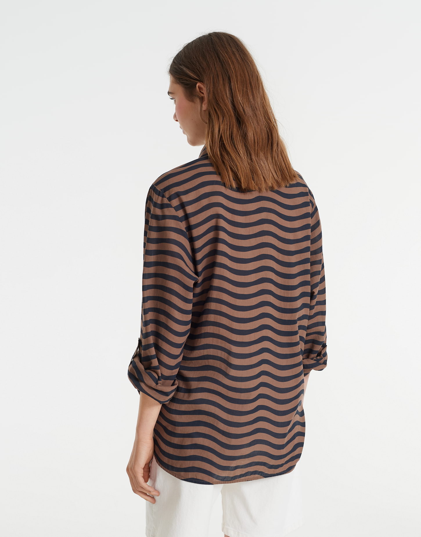 Opus Blouses 2454910499100 4251892269051 Blouse van Opus in een golvend dessin met lange hold-up mouwen, kraag en een knoopsluiting. Materiaal: Katoen 100% |