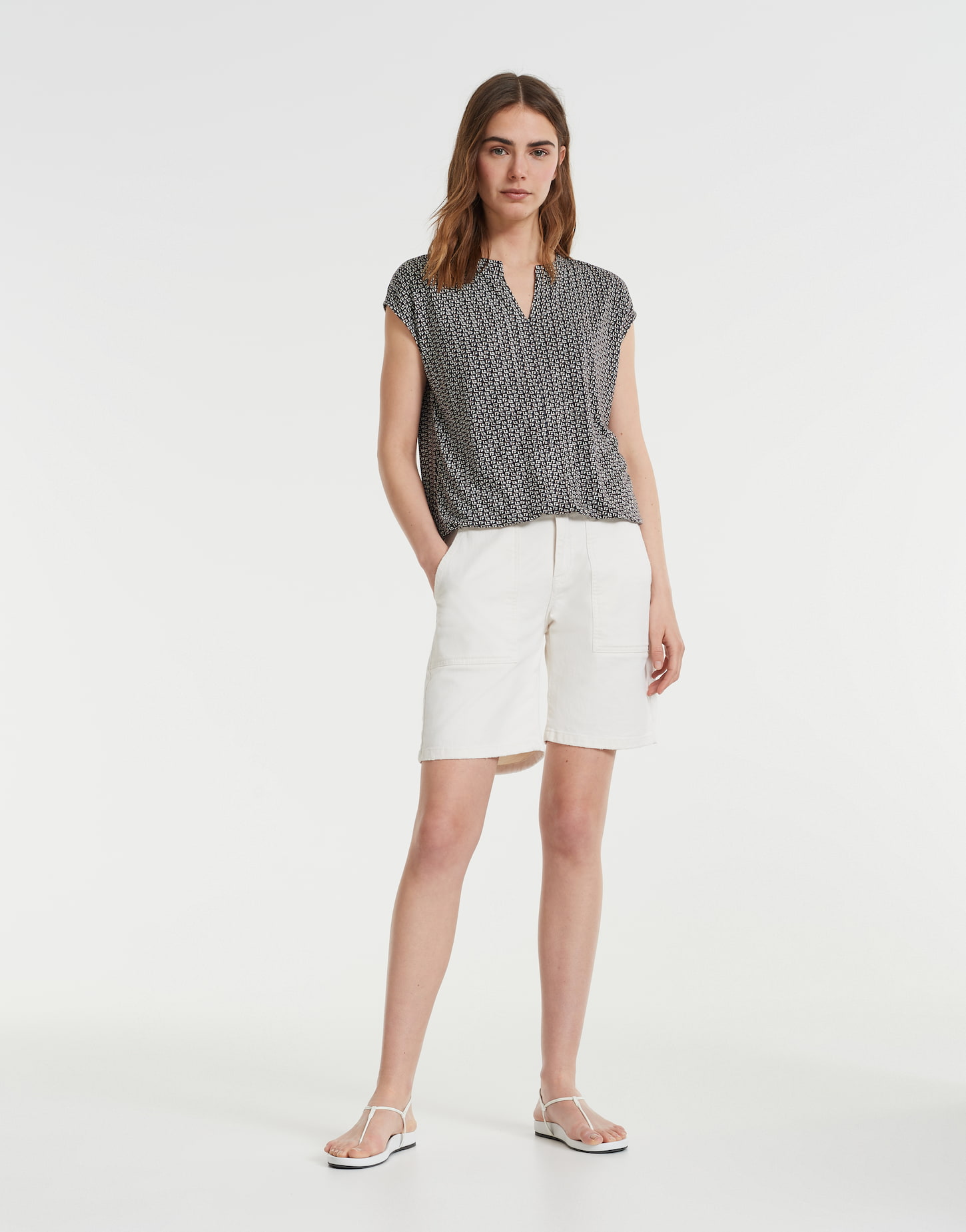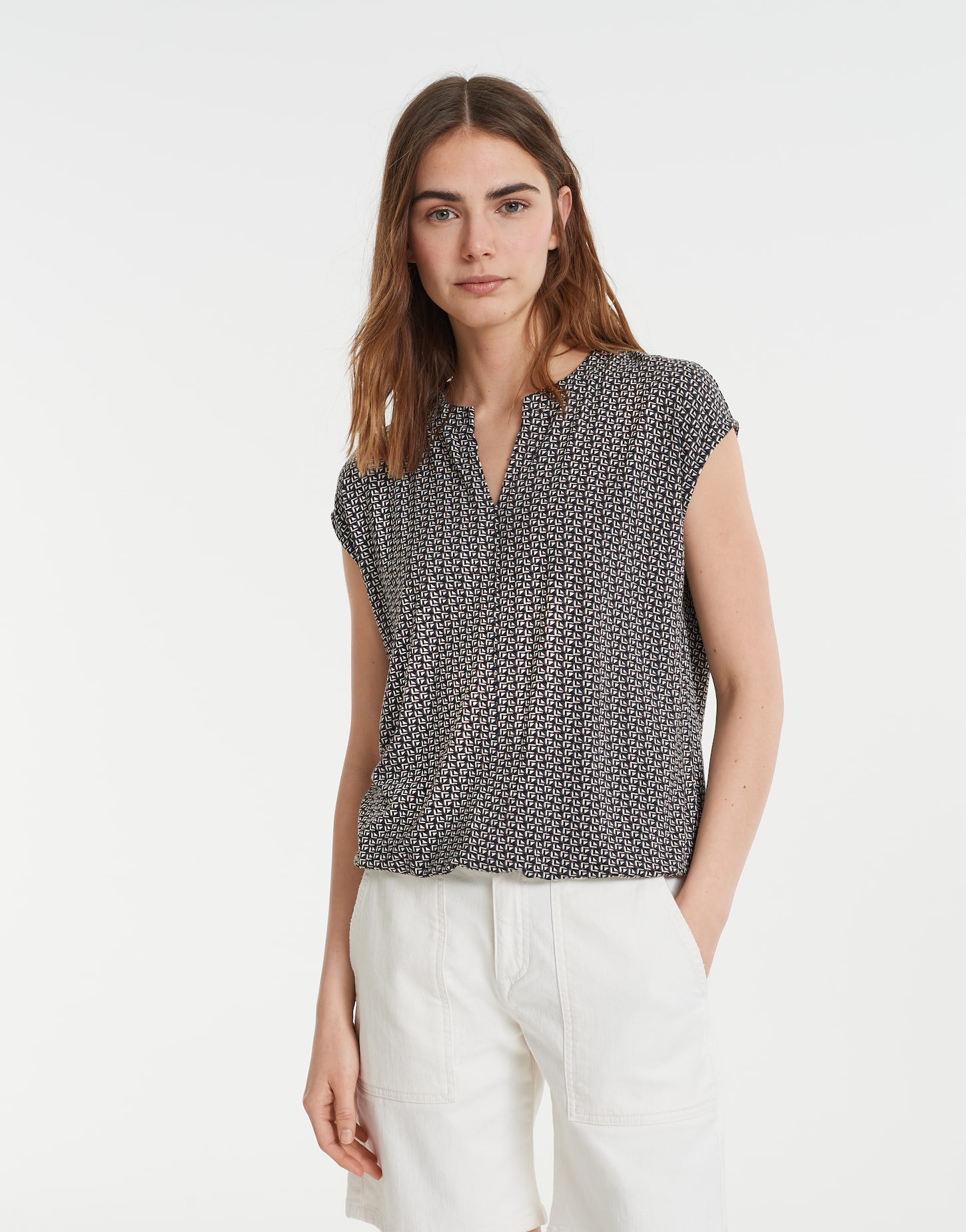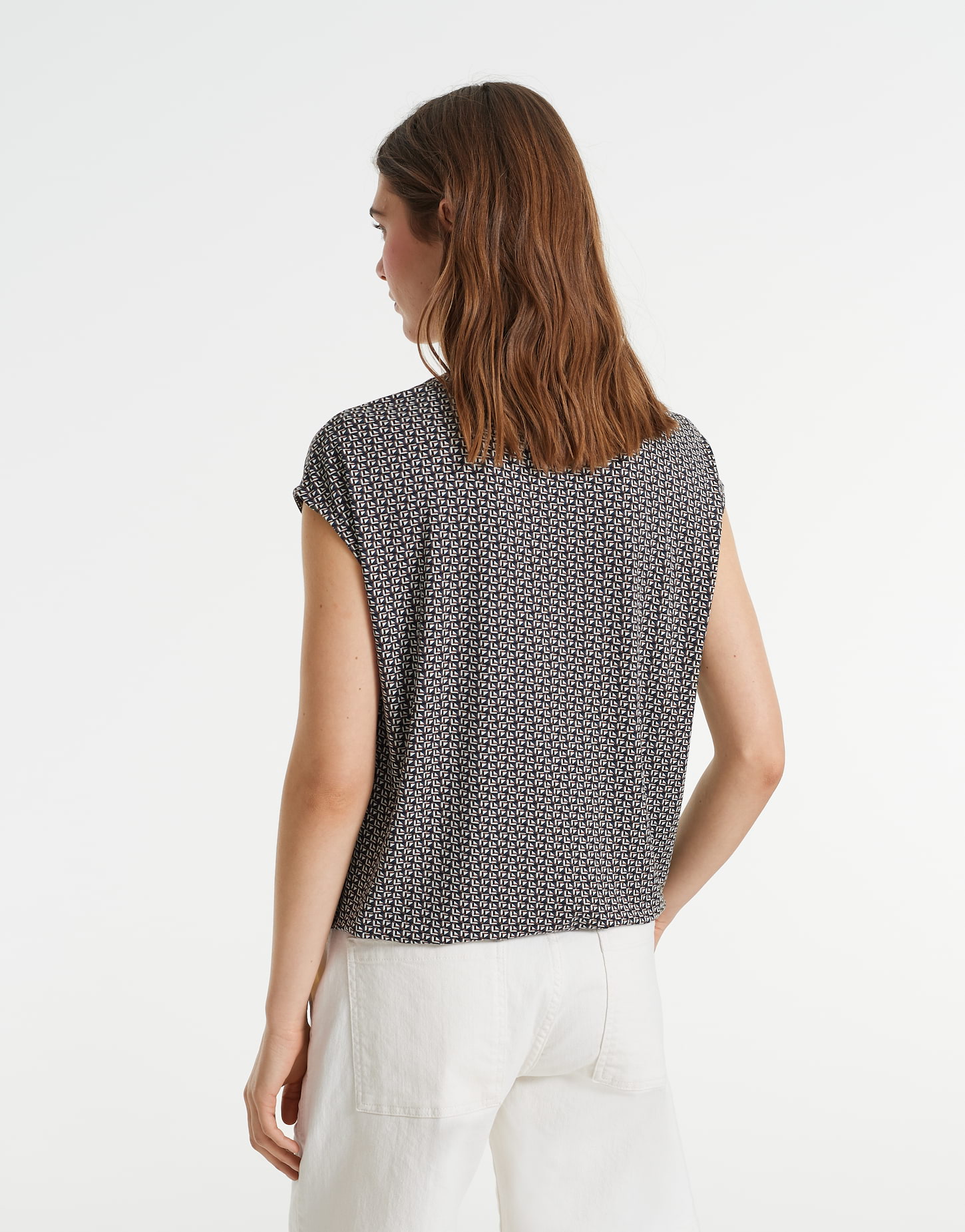 Opus Tops en Shirts 2411010525100 4251892269259 Shirt van Opus in een abstract dessin met korte aangeknipte mouwen, V-hals en een trekkooord in de zoom. Materiaal: viscose 95%| elastan 5% |