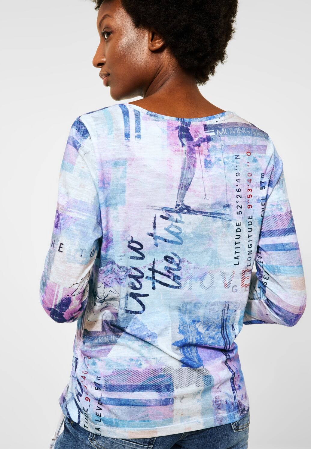 Cecil Tops en Shirts B317041 4063041036601 Shirt van Cecil in een all-over dessin met driekwart, ronde hals en een rimpelkoord in de linker zijnaad. Materiaal: modal 50%| katoen 50% |