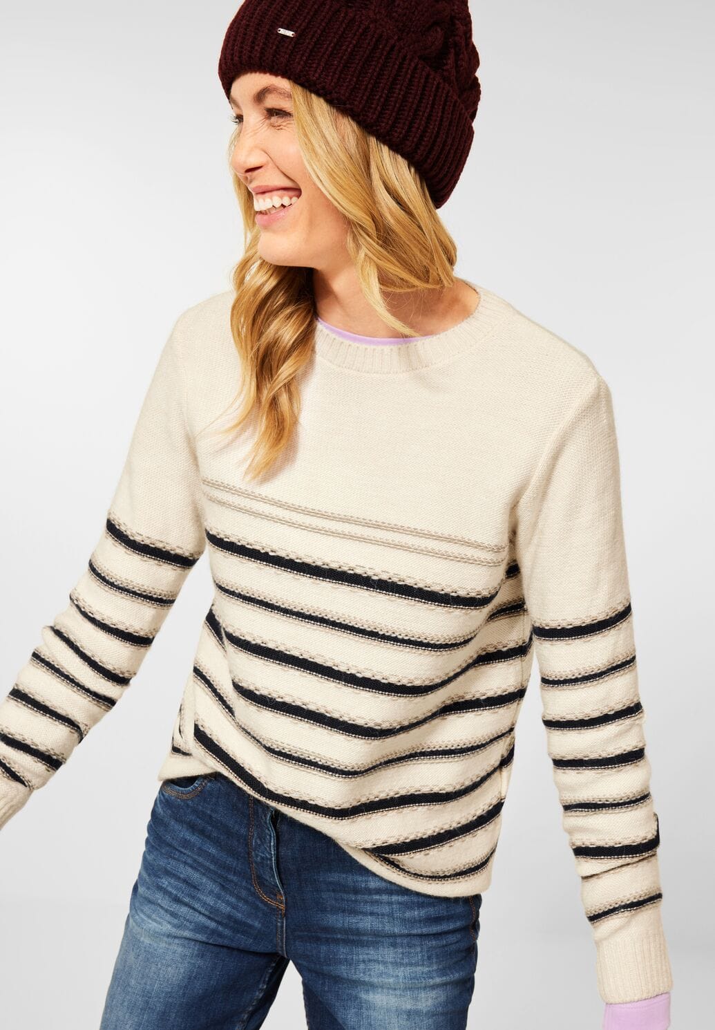 Cecil Truien en Vesten B301642 4063041022789 Trui van Cecil met een gestreept patroon, lange mouwen, ronde hals en ribgebreide boorden. Materiaal: polyacryl 56%| katoen 31%| polyamide 7%| polyester 6% |