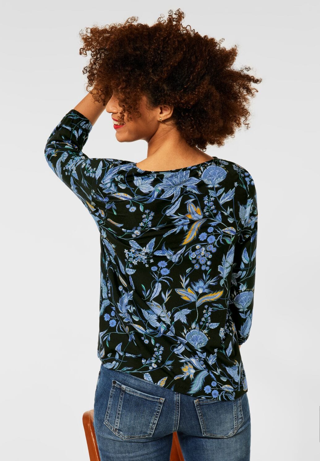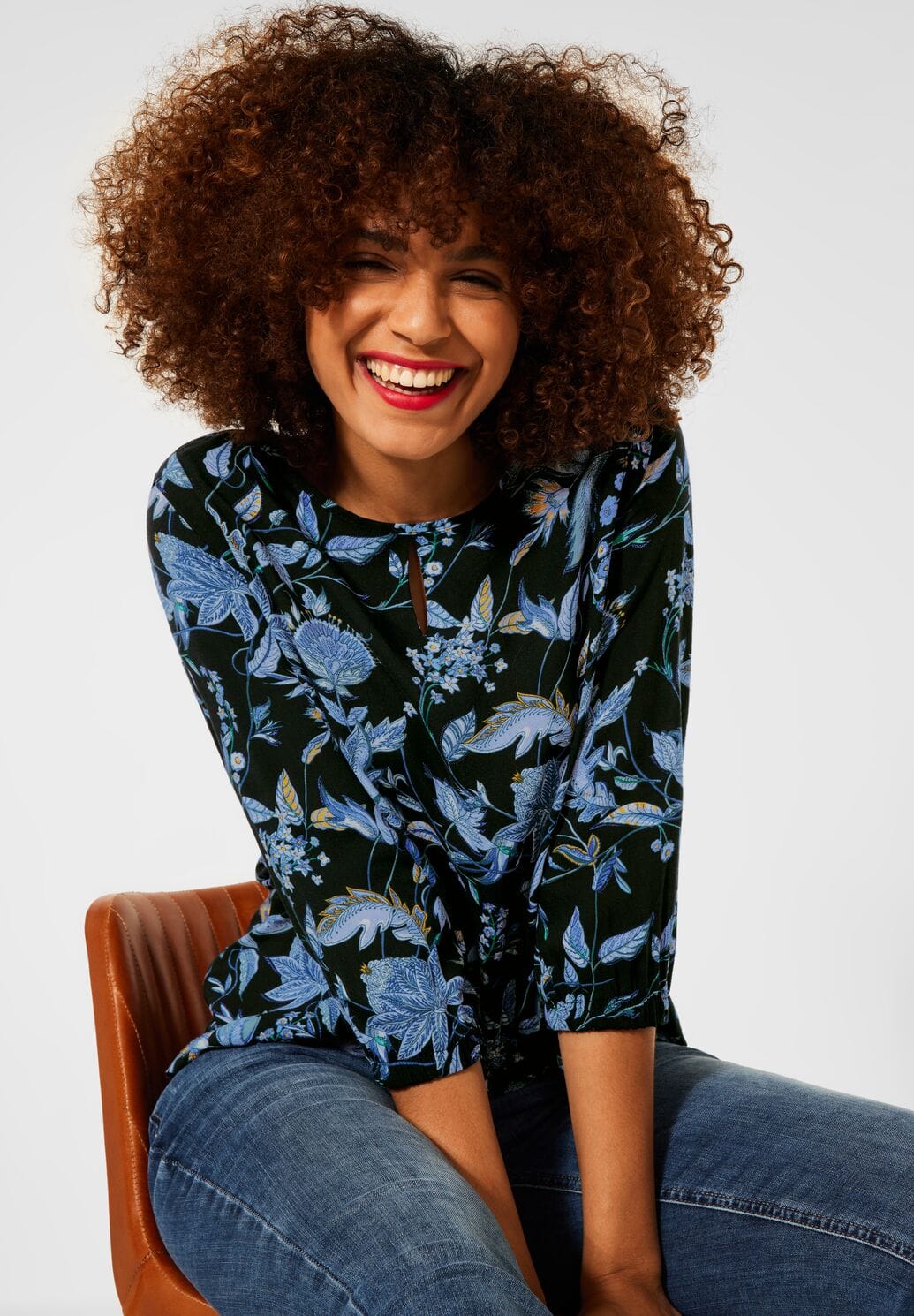 Street One Tops en Shirts A316777 30001 4063052337063 Shirt van Street One in een bloemen dessin met driekwart mouwen, plooitjes detail op de schouders en een ronde hals voorzien van keyhole aan de voorzijde. Materiaal: viscose 95%| elastan 5% |