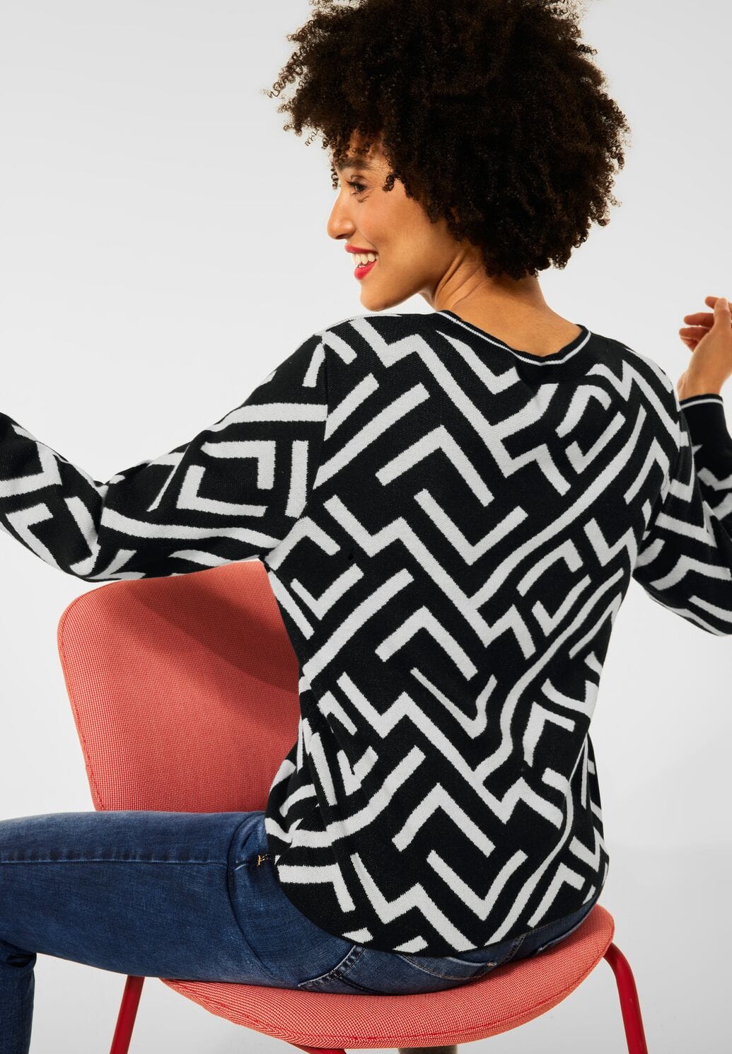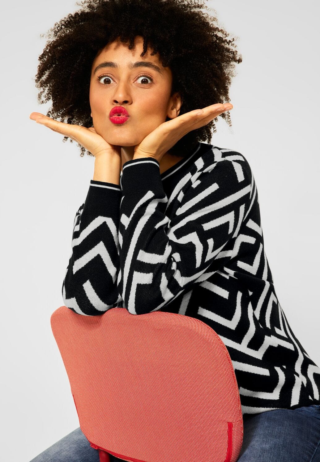 Street One Truien en Vesten A301658 20001 4063052550400 Trui van Street One in een zig-zag dessin met lange mouwen, ronde hals en sportieve boorden. Materiaal: polyacryl 50%| katoen 50% |