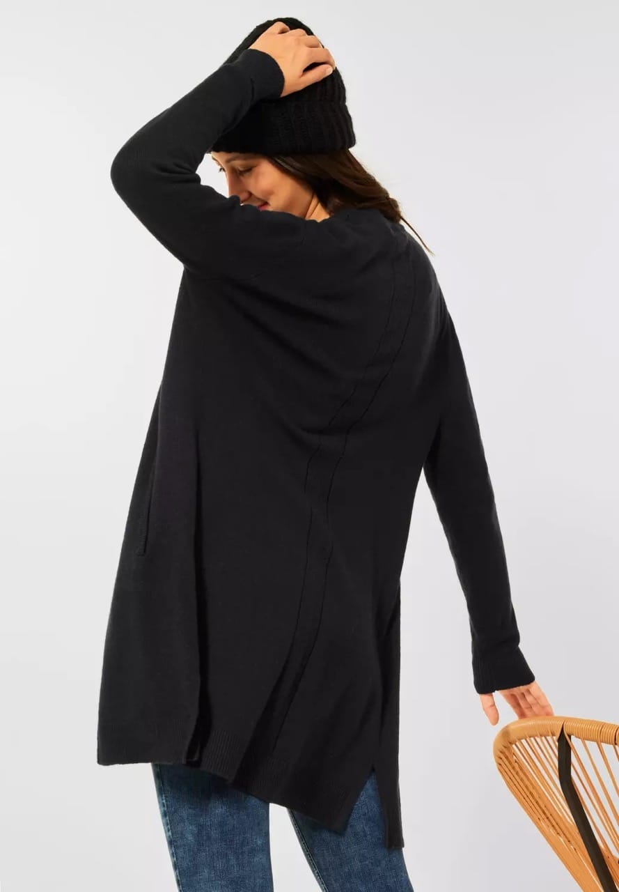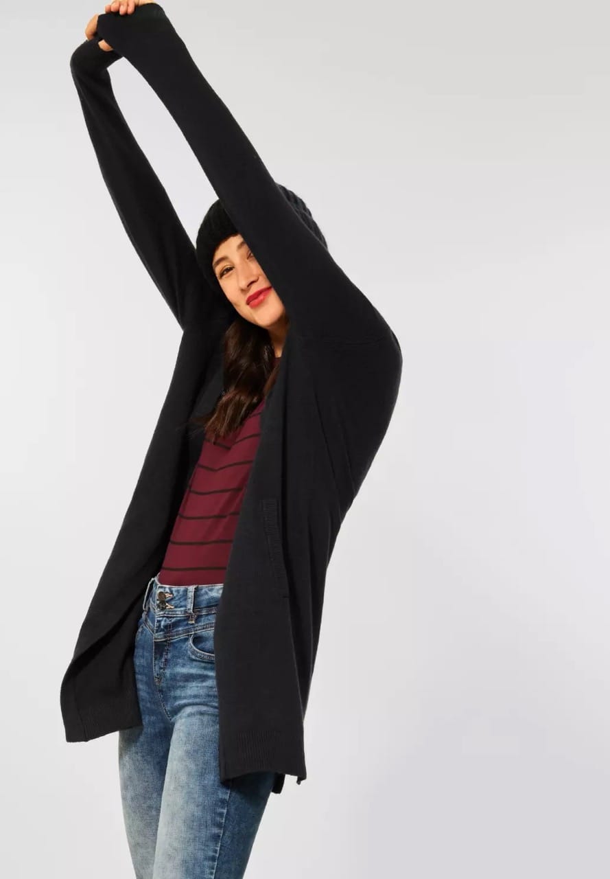 Street One Truien en Vesten A253289 10001 4063052510015 Zacht openvallend vest van Street One met lange mouwen, opgestikte zakken en een ajour baan aan de achterzijde. Materiaal: katoen 37%| polyacryl 34%| polyester 26%| elastan 3% |