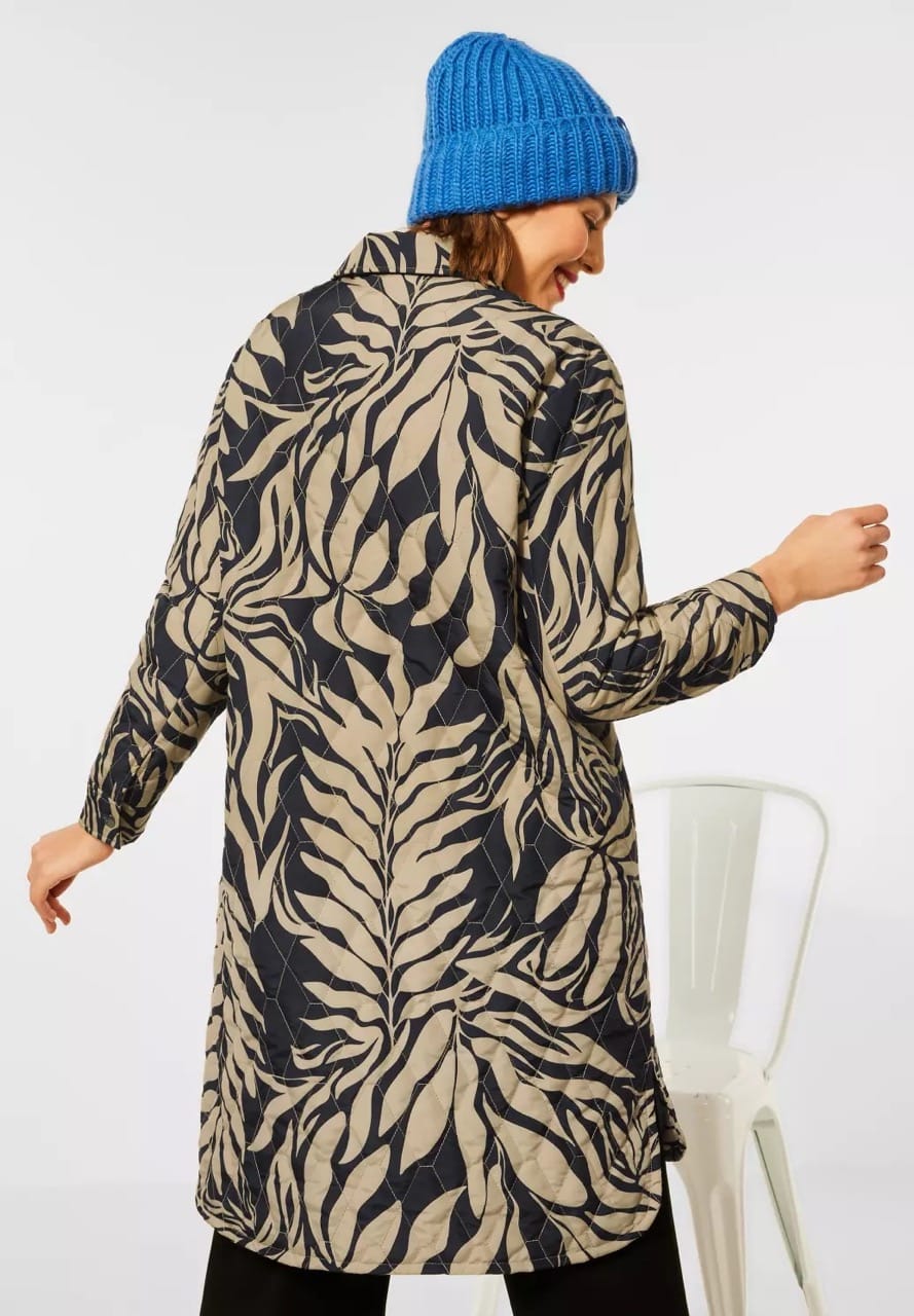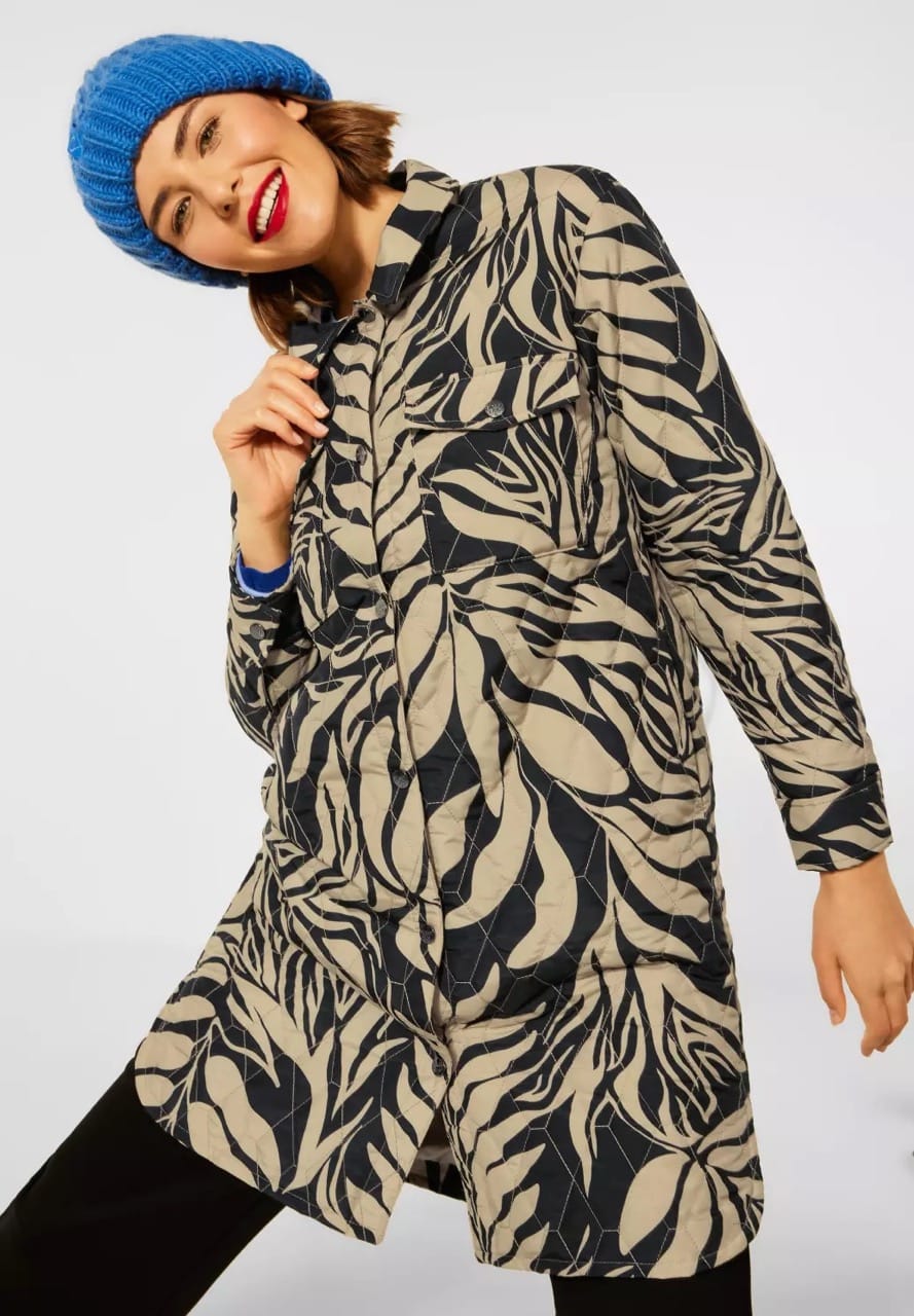 Street One Blazers A211520 4063052670603 Indoor jas van Street One in een all-over dessin met lange mouwen, overhemdkraag, knoopsluiting en twee borstzakken. Materiaal: Polyester 100% |