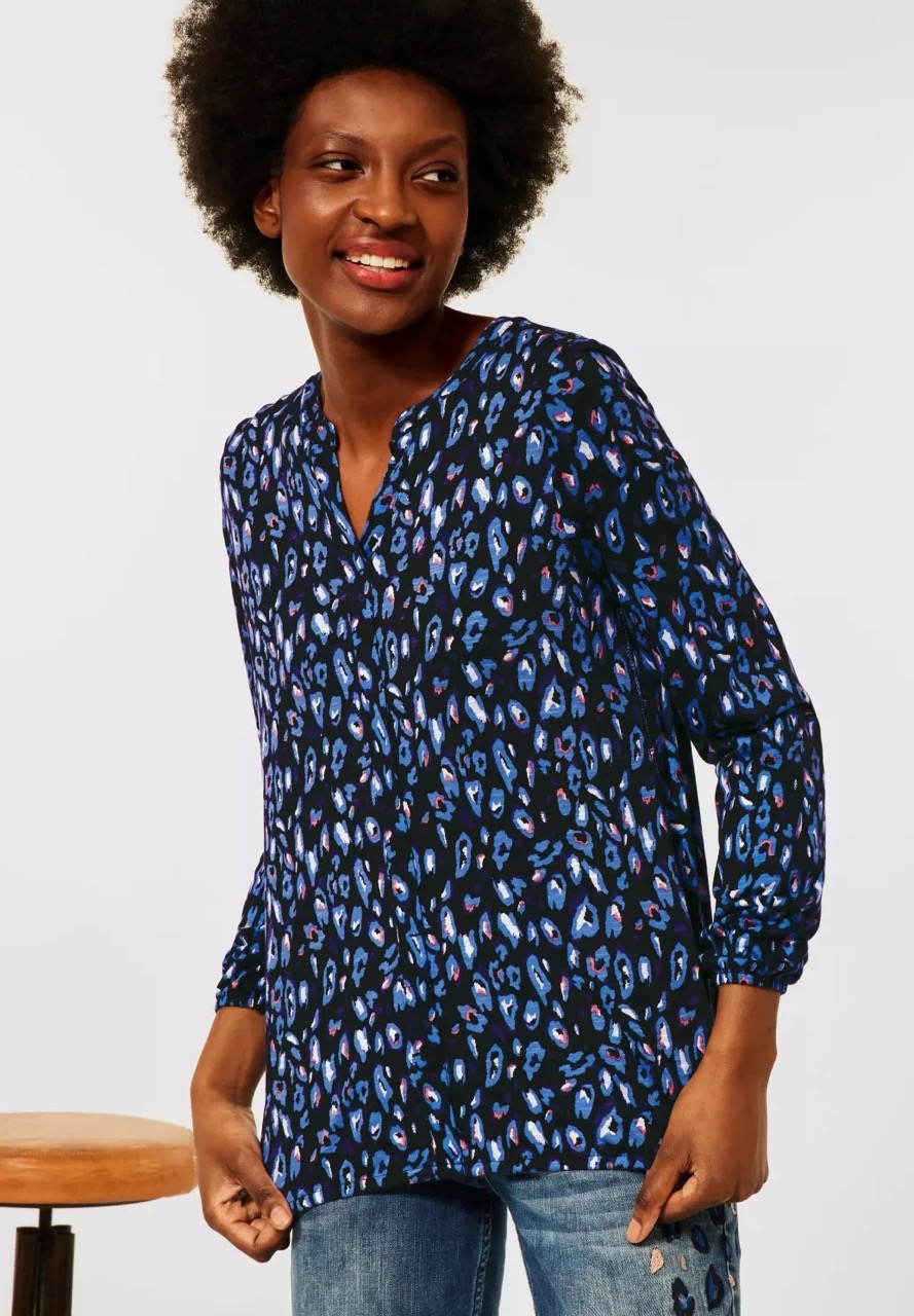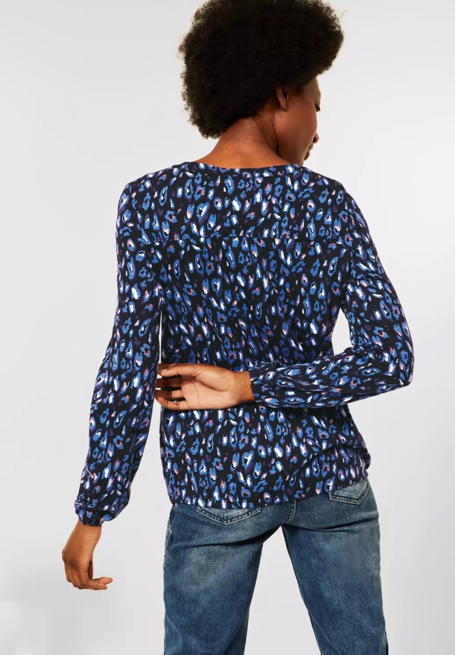 Cecil Blouses B317231 30128 4063041154008 Shirt van Cecil in een luipaard dessin met lange mouwen, ronde hals met split en elastische boorden. Materiaal: Modal 50%| katoen 50% |