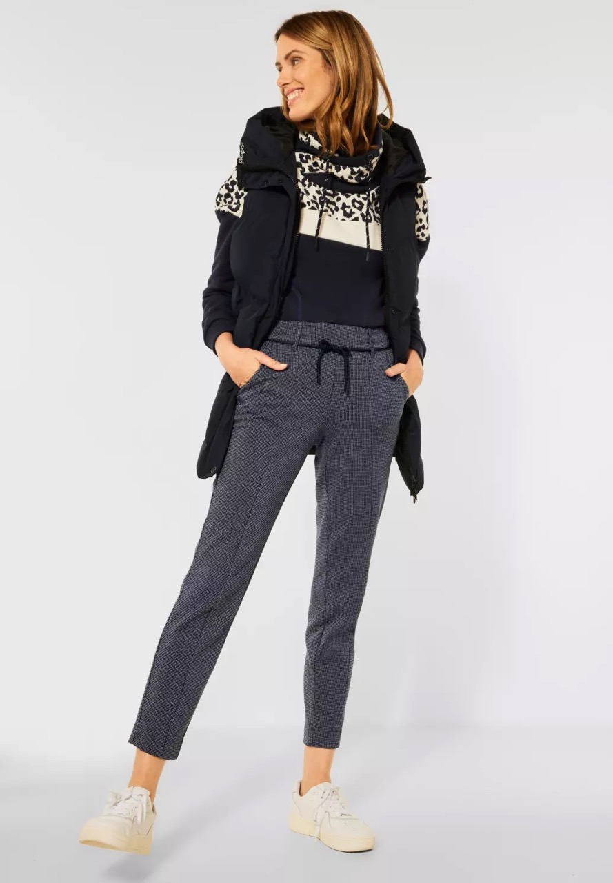 Cecil Broeken B374689 4063041183077 4-pocket broek van Cecil in een casual fit met een elastische tailleband, all-over dessin en een riem. Materiaal: Polyester 68%| viscose 30%| elastan 2% |