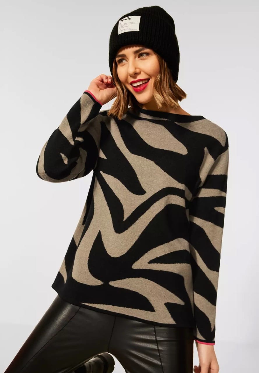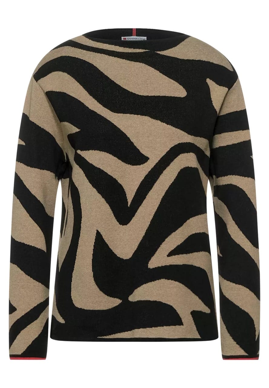 Street One Truien en Vesten A301762 4063052689049 Jacquard trui van Street One met lange mouwen voorzien van contrasterende manchet en een boothals. Materiaal: Katoen 50%| polyacryl 50% |