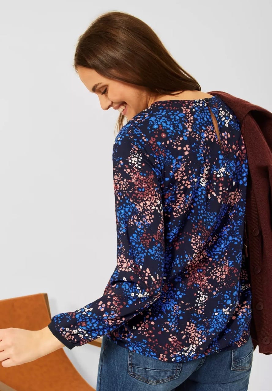 Cecil Blouses B342963 4063041161204 Blouse van Cecil in een all-over dessin met lange mouwen, ronde hals met key-hole aan de achterzijde voorzien van een knoopsluiting en een elastische zoom. Materiaal: EcoVero viscose 100% |