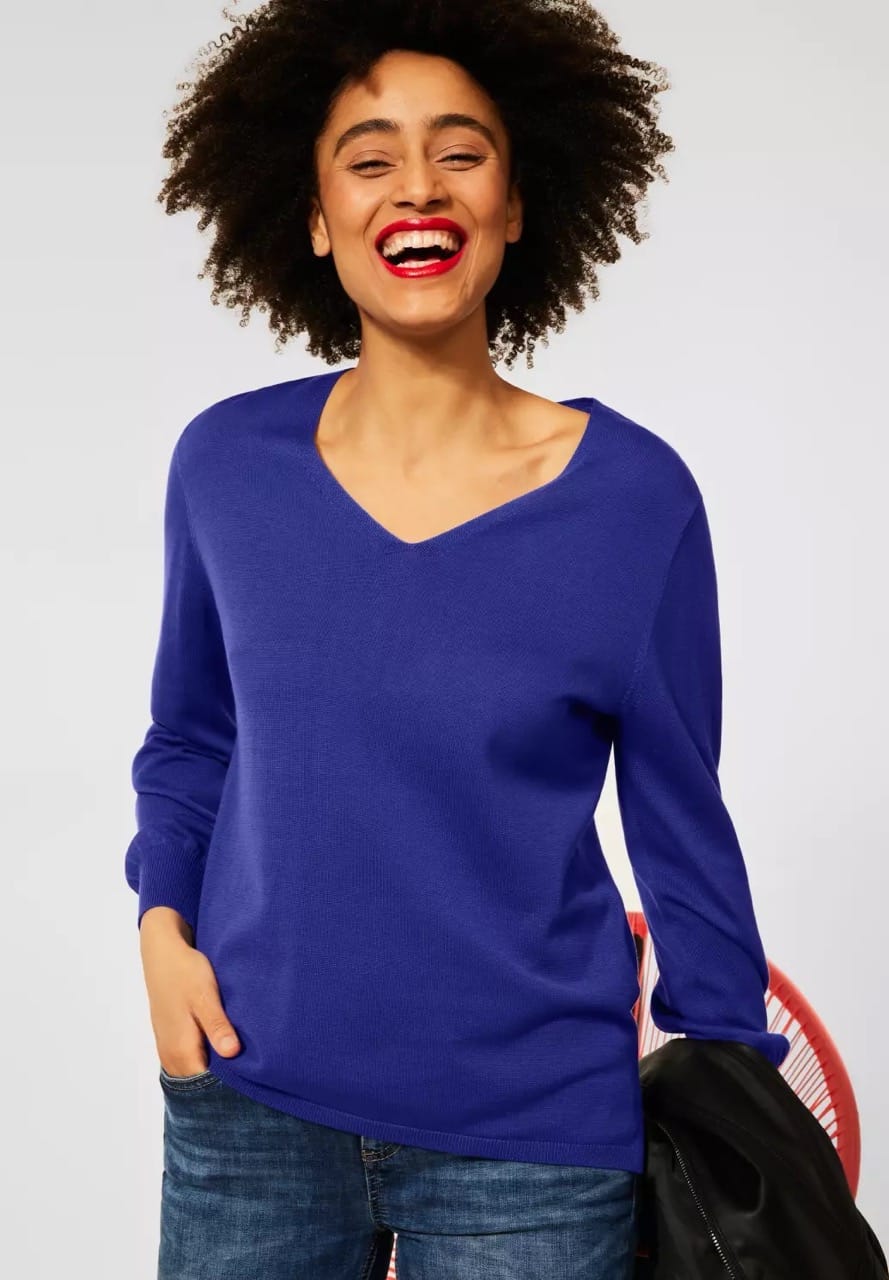 Street One Truien en Vesten A301651 13478 4063052701178 Zachte gebreide trui van Street One met lange vleermuismouwen, V-hals en geribde manchetten. Materiaal: viscose 60%| katoen 40% |