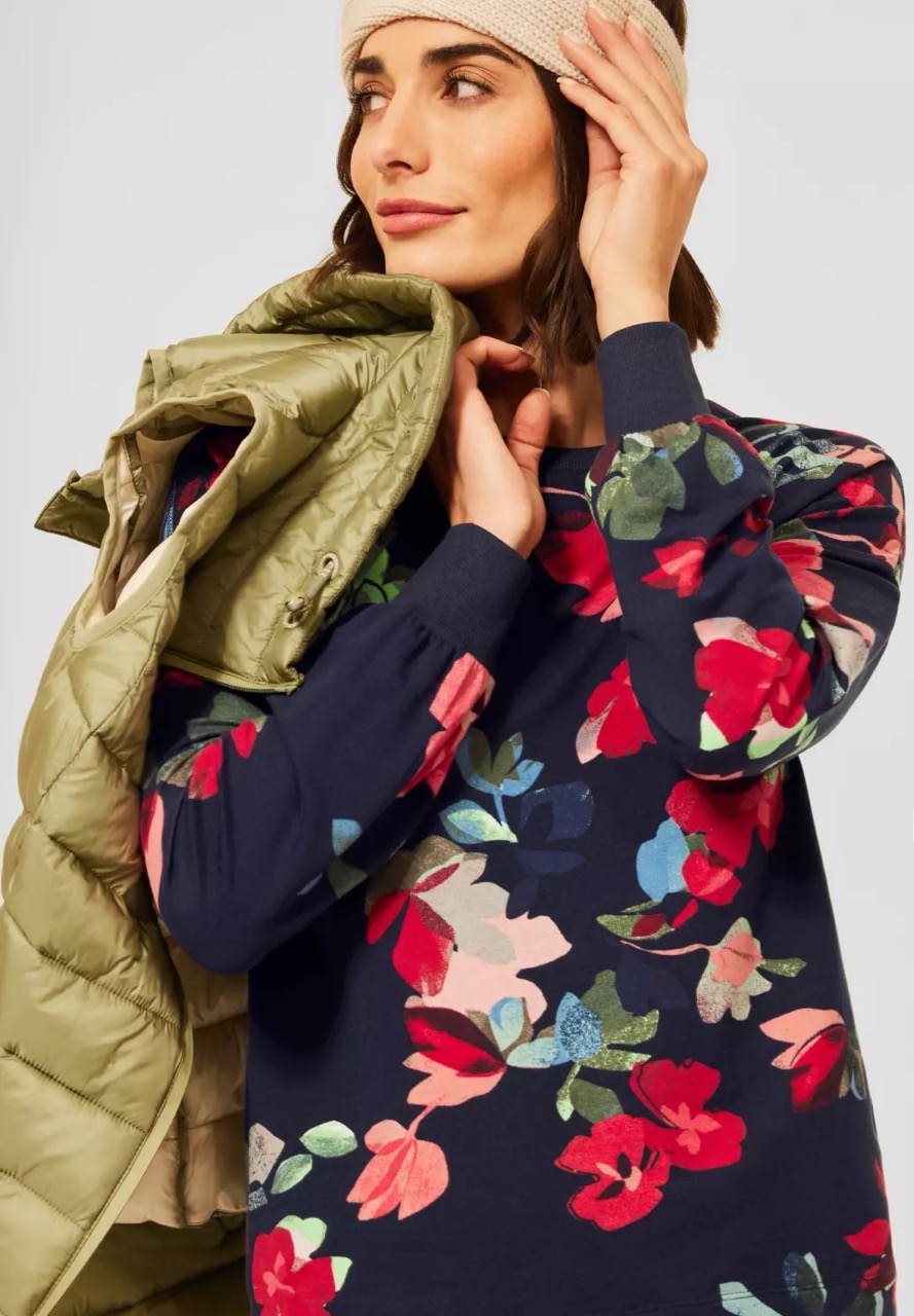 Cecil Truien en Vesten B317375 4063041236025 Shirt van Cecil in een bloemen dessin met lange mouwen en een ronde hals. Materiaal: Katoen 48%| modal 48%| elastan 4% |