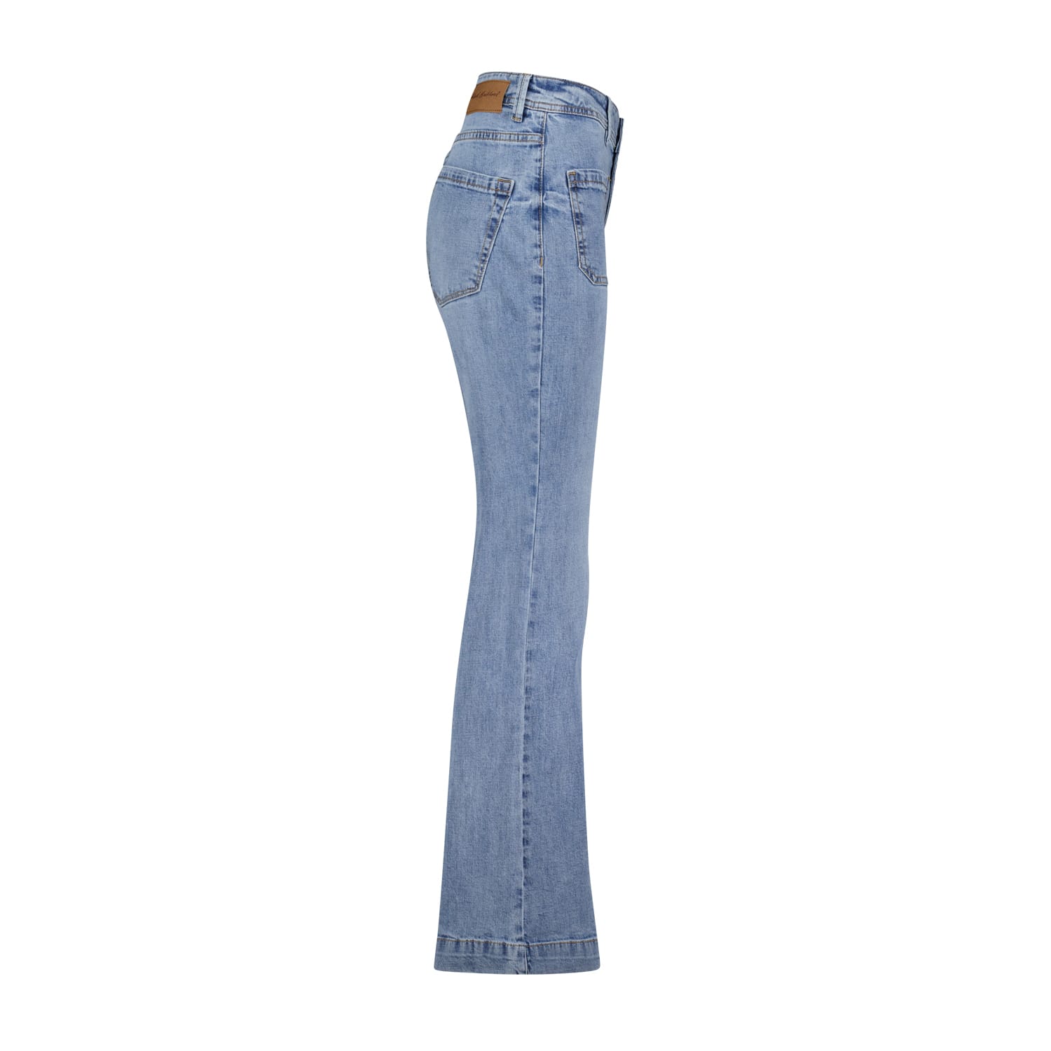 Red button Jeans SRB2951 COCO Mid wash 8720171823407 Jeans van Red Button met een knoop- en ritssluiting, wijduitlopende pijpen en opgestikte zakken aan de voor- en achterzijde. |