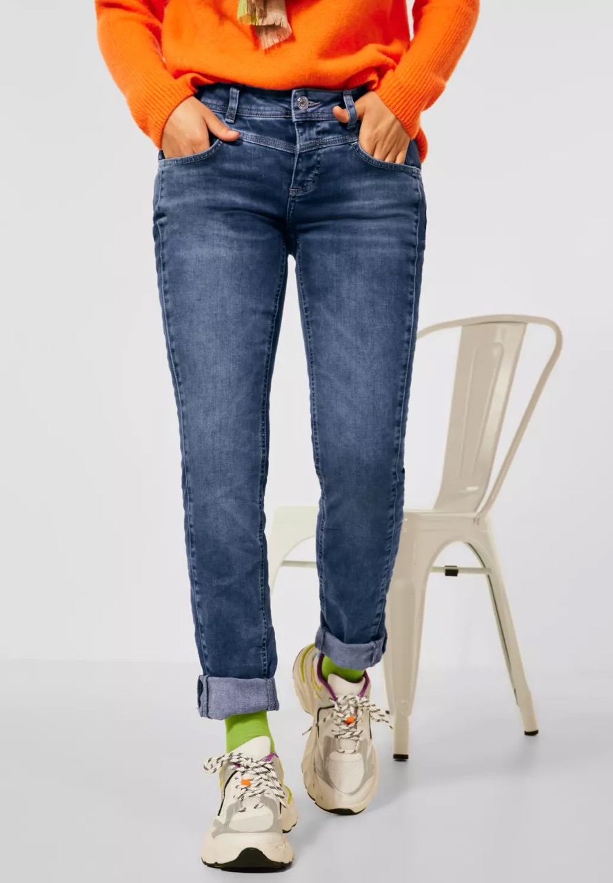 Street One Jeans A374775 4063052745486 4-pocket casual fit jeans van Street One met een middelhoge taille, smalle pijpen en een knoop- en ritssluiting. Materiaal: Katoen 84%| polyester 15%| elastan 1% |