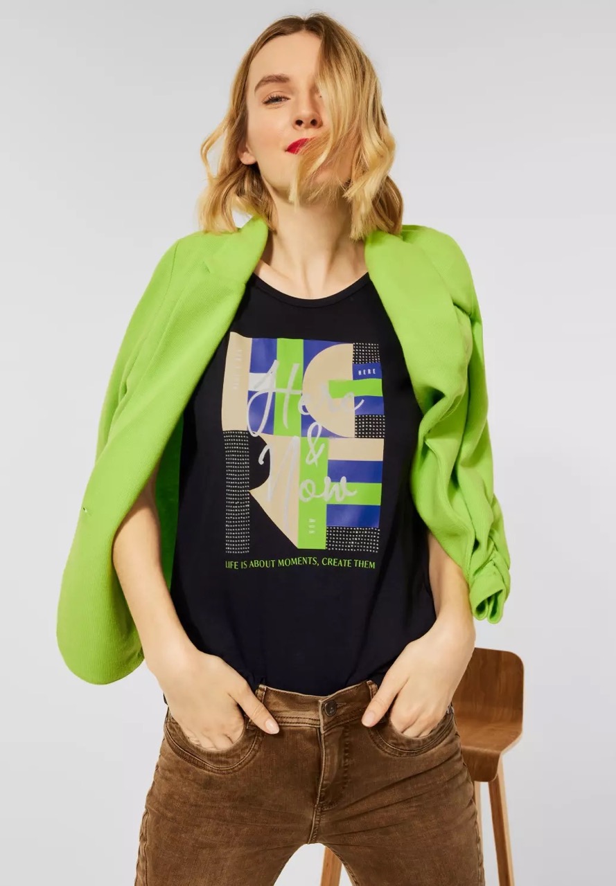 Street One Tops en Shirts A317349 33325 4063052755973 T-shirt van Street One met korte mouwen, ronde hals en een print aan de voorzijde. Materiaal: Viscose 80%| polyester 20% |