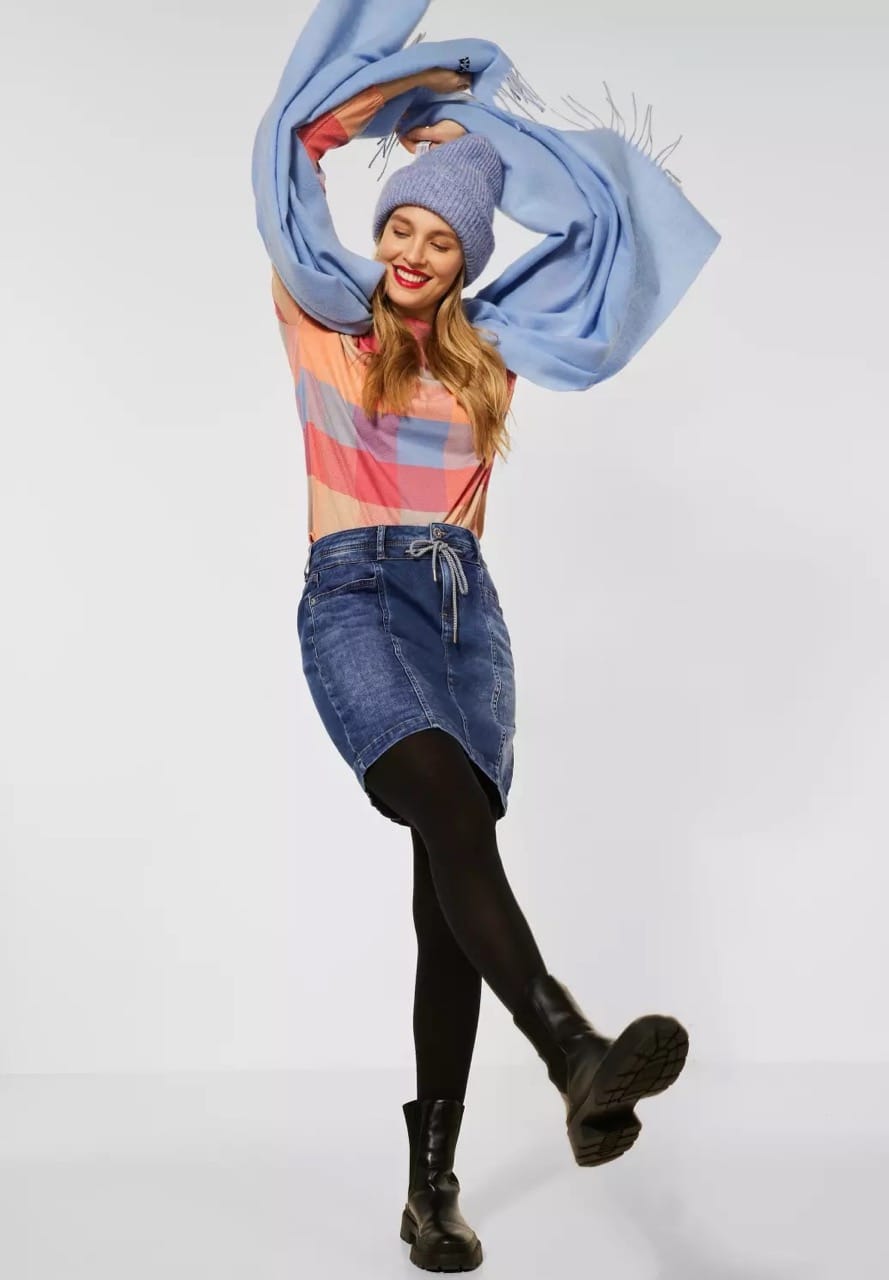 Street One Jurken en Rokken A361016 4063052744656 4-pocket spijkerrok van Street One met knoop- en ritssluiting en een trekkoord in de taille. Materiaal: Katoen 99%| elastan 1% |
