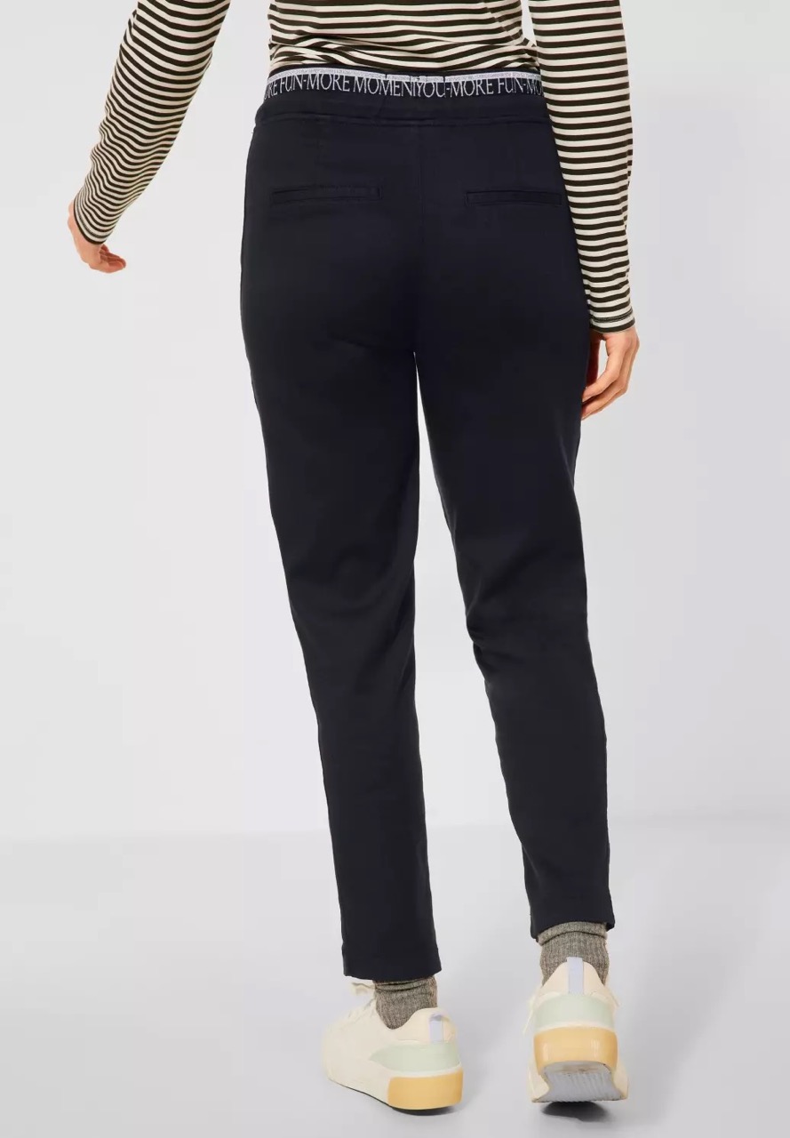 Street One Broeken A374758 4063052759001 Broek van Street One in joggingstijl met een middelhoge taille, elastische tailleband voorzien van een trekkoord en twee ritszakken. Materiaal: Katoen 50%| lyocell 47%| elastan 3% |