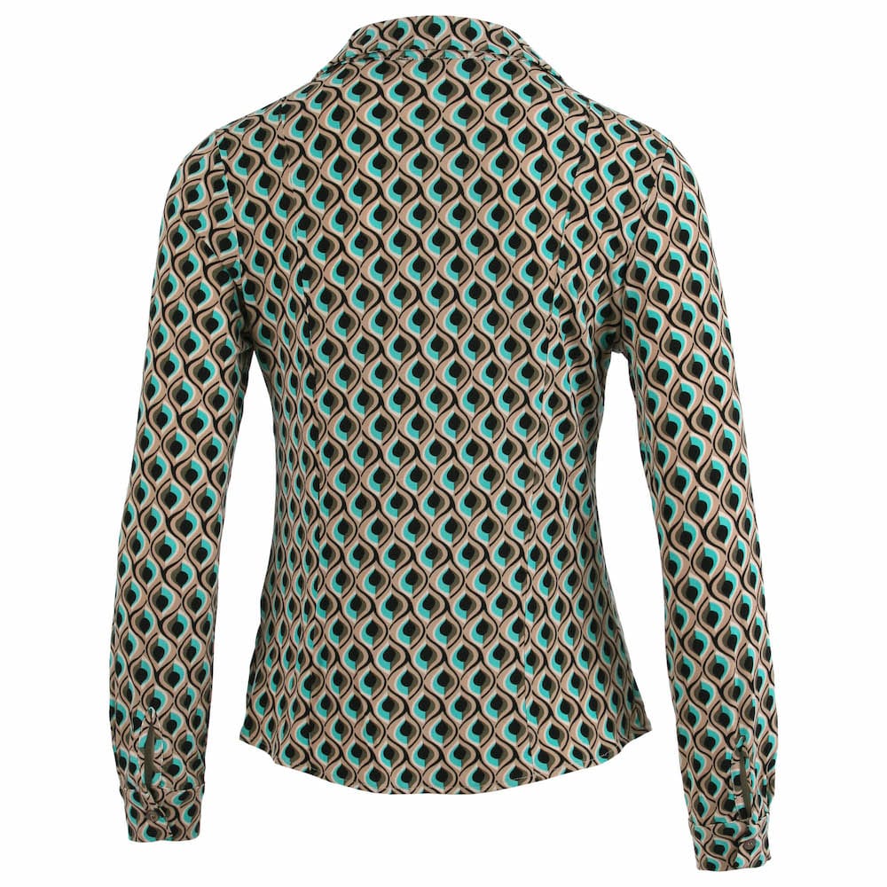 Enjoy Blouses 127500 groen 2800000624415 Blouse van Enjoy in een all-over dessin met lange mouwen, kraag en een knoopsluiting. Materiaal: Polyester 95%| elastan 5% |
