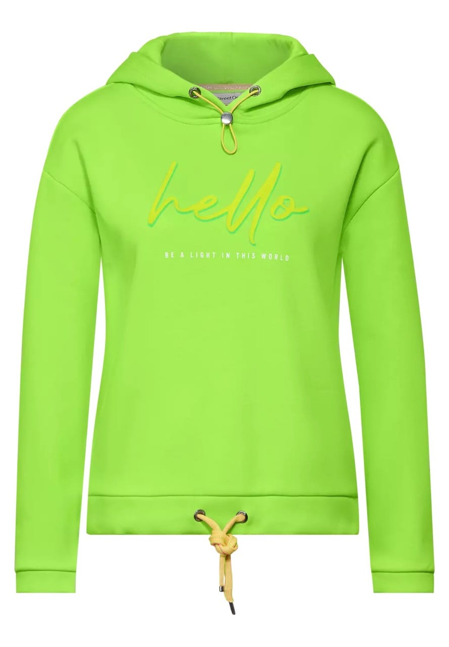 Street One Truien en Vesten A301790 4063052732219 Sweatshirt van Street One met een tekstprint aan de voorzijde, capuchon en een trekkoord in de zoom. Materiaal: Katoen 65%| polyester 35% |